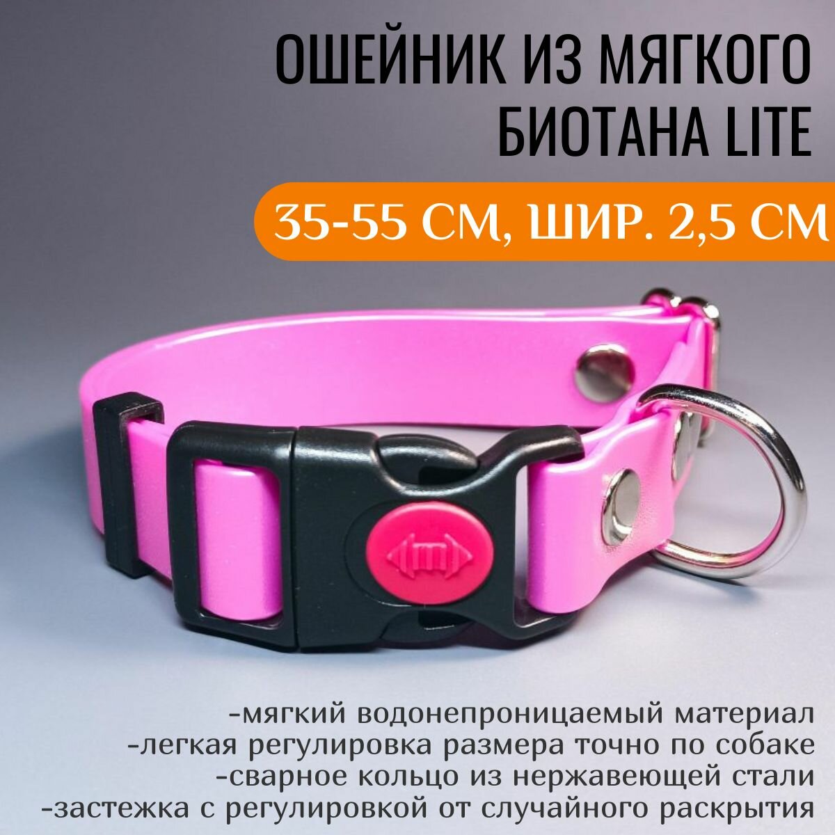 СохранитьR-Dog Ошейник из мягкого биотана Lite, пластиковая застежка с фиксатором, цвет розовый перламутр, длина 35-55 см, ширина 2,5 см интересное: