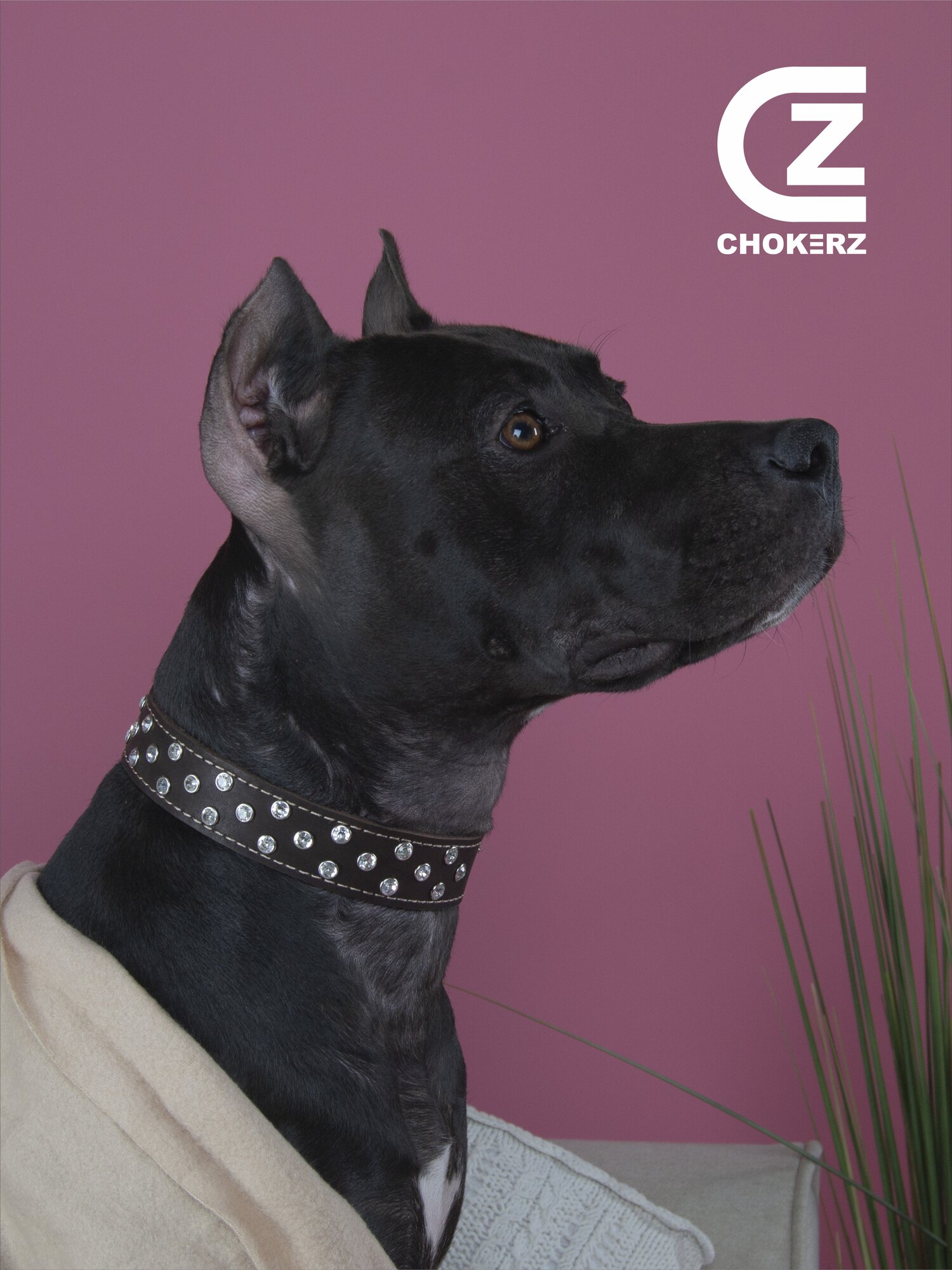 Ошейник кожаный черный CHOKERZ со стразами для средних и крупных собак. 42-50 см. интересное: