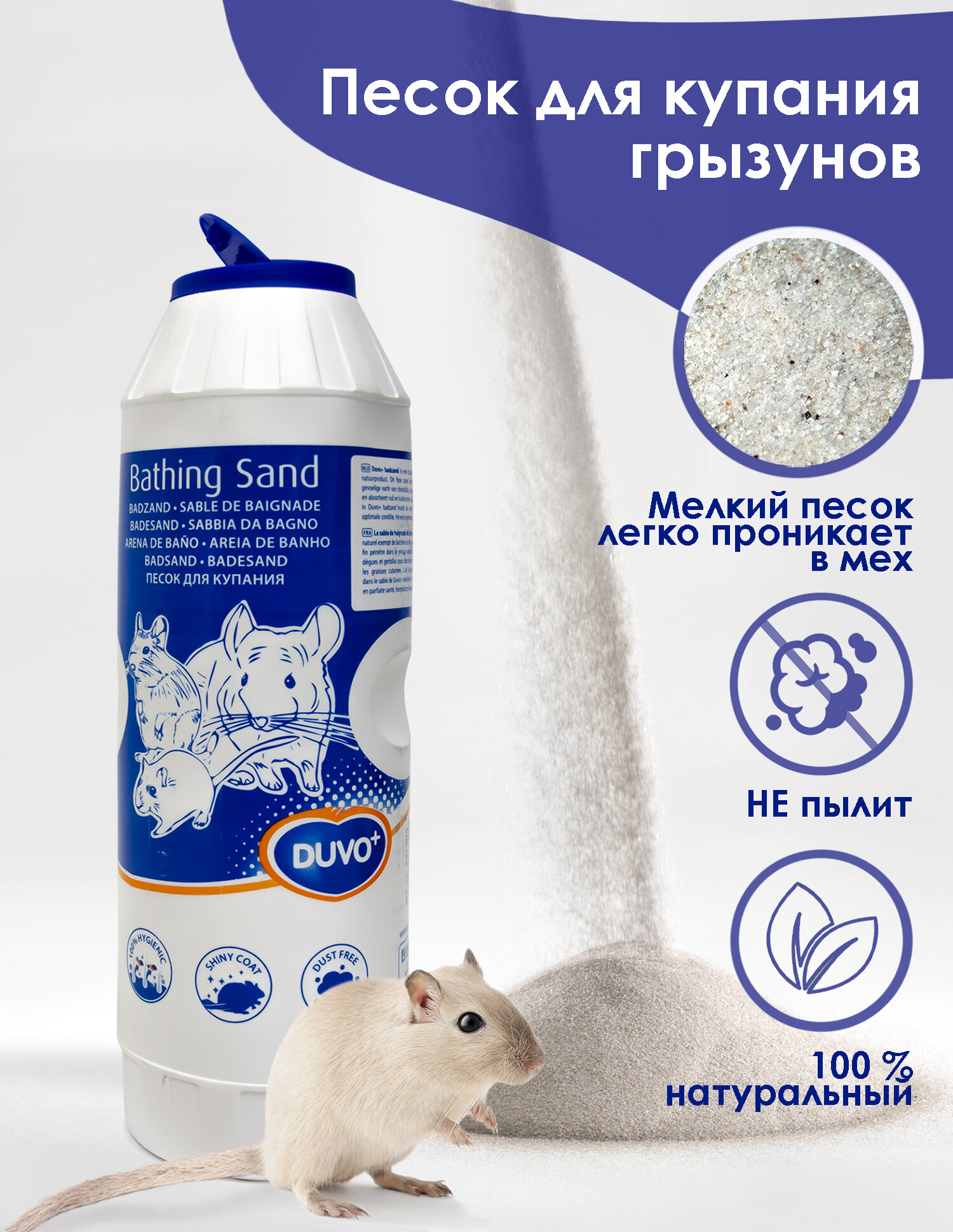 Купить Песок для купания шиншилл грызунов DUVO+, 1.9кг, вулканический (Бельгия)