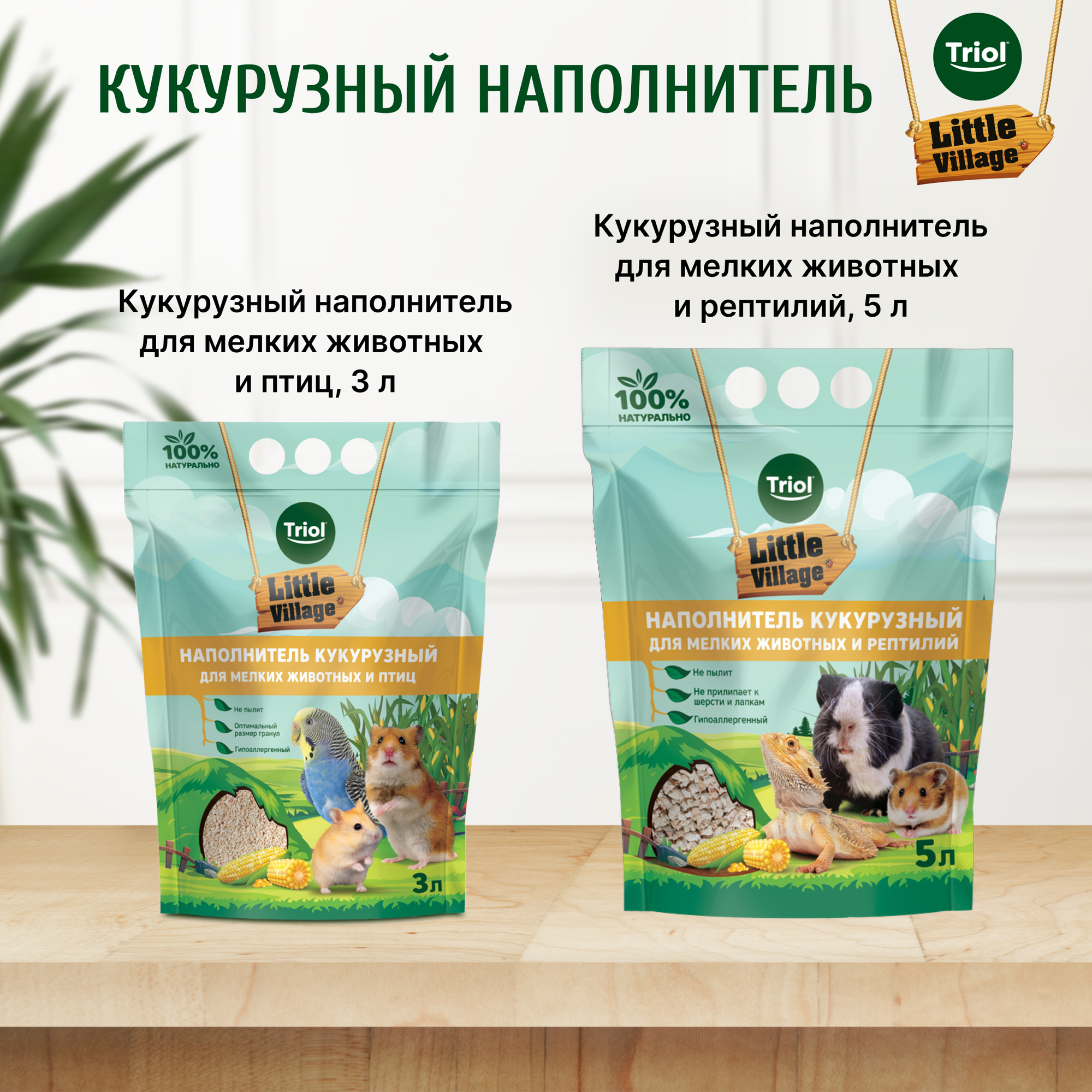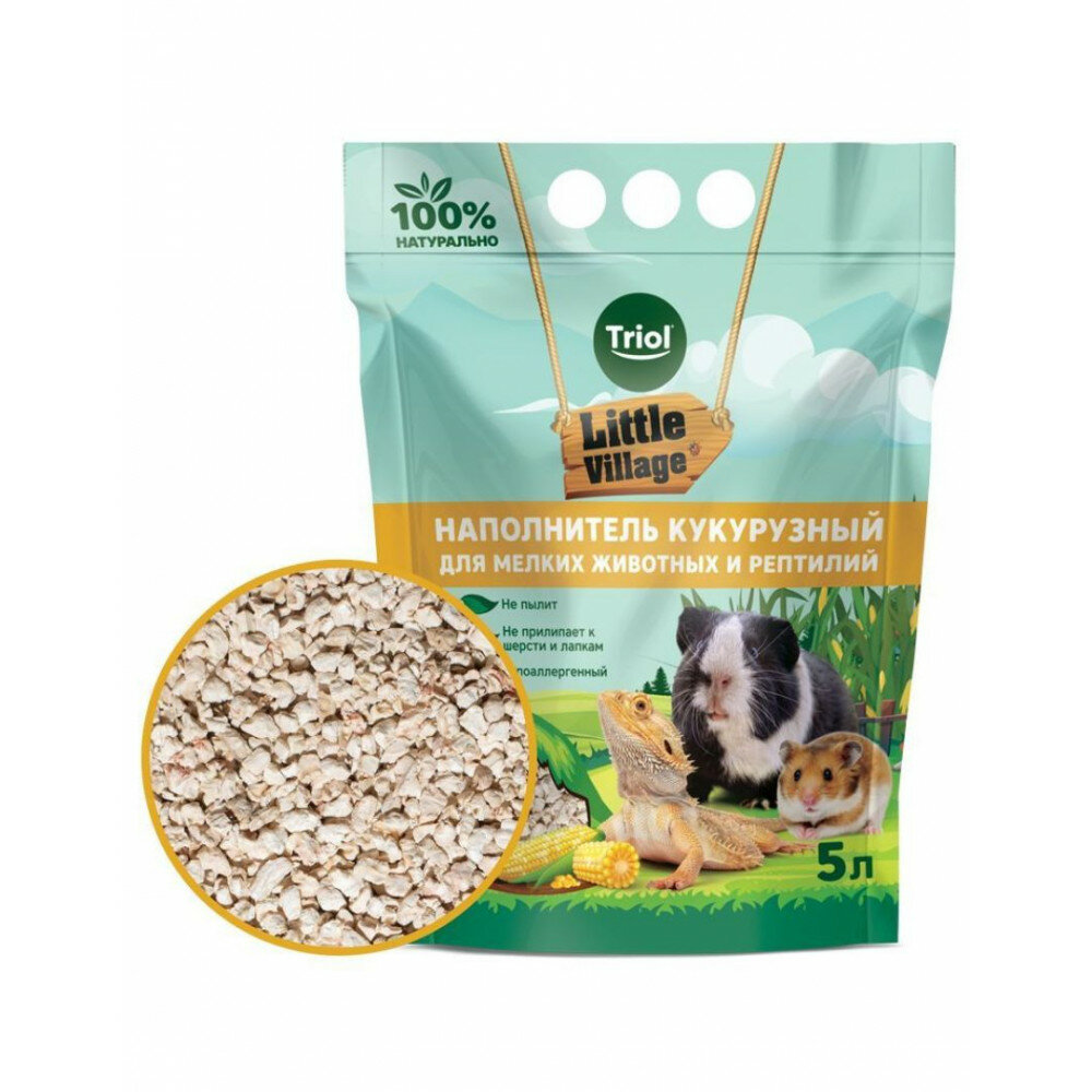 Наполнитель для грызунов, птиц и рептилий, кукурузный, от бренда Triol Little Village, 5 литров интересное: