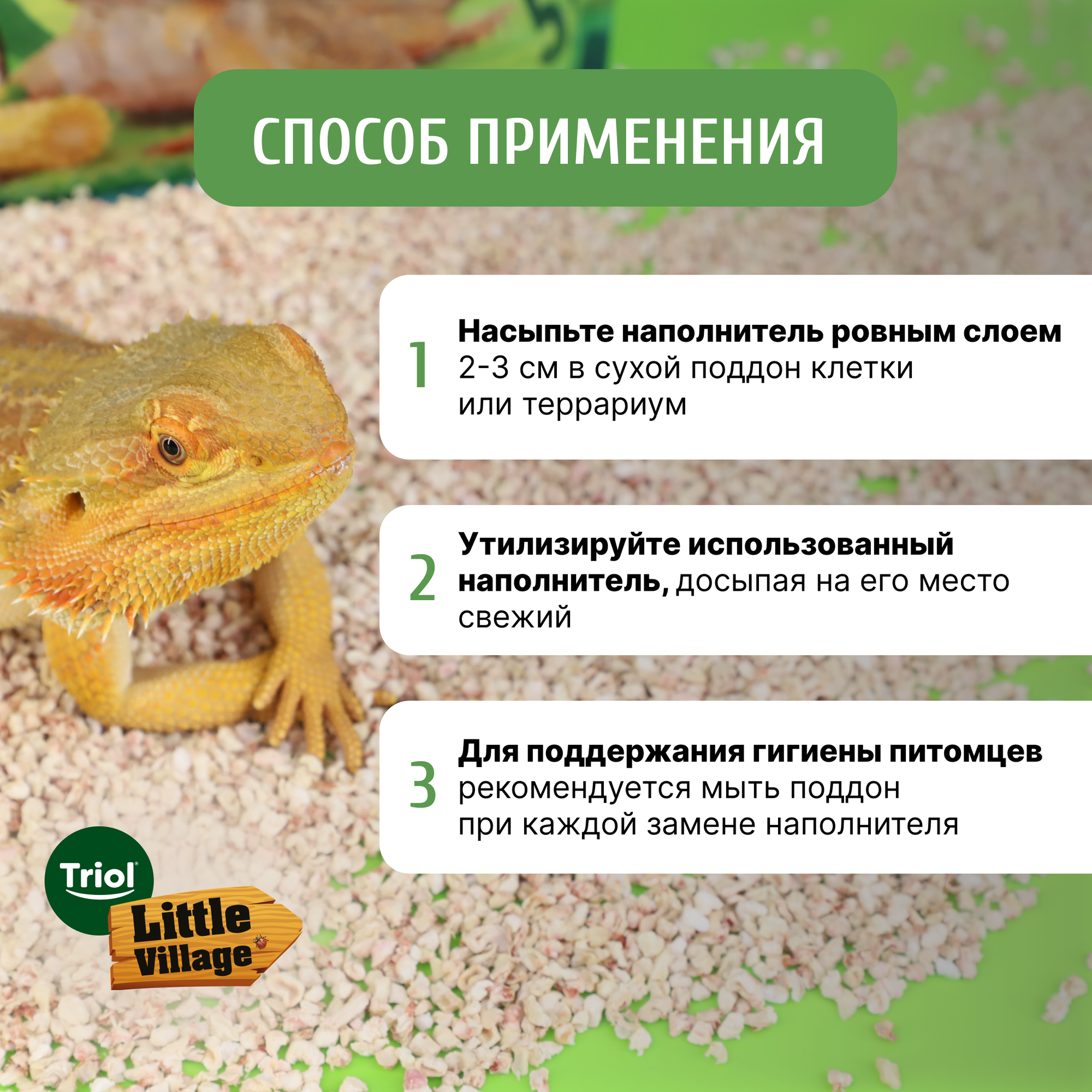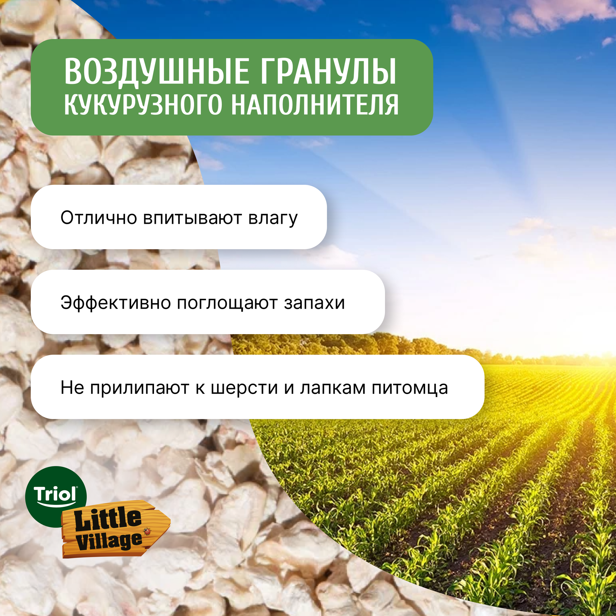 Наполнитель для грызунов и птиц от бренда Triol Little Village, кукурузный, 3 литра
