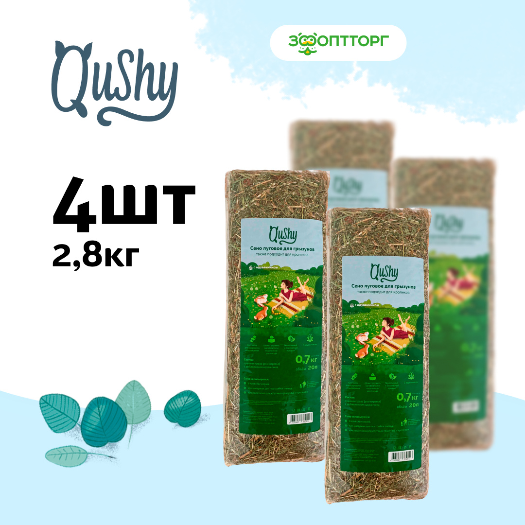 Купить Qushy сено луговое с одуванчиком 700 г. упаковка 4 шт по 700 г.