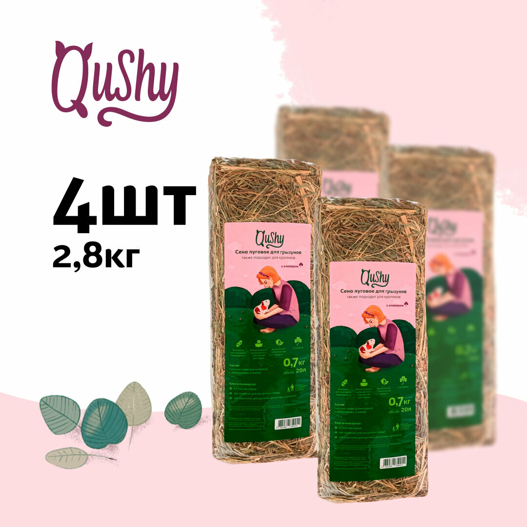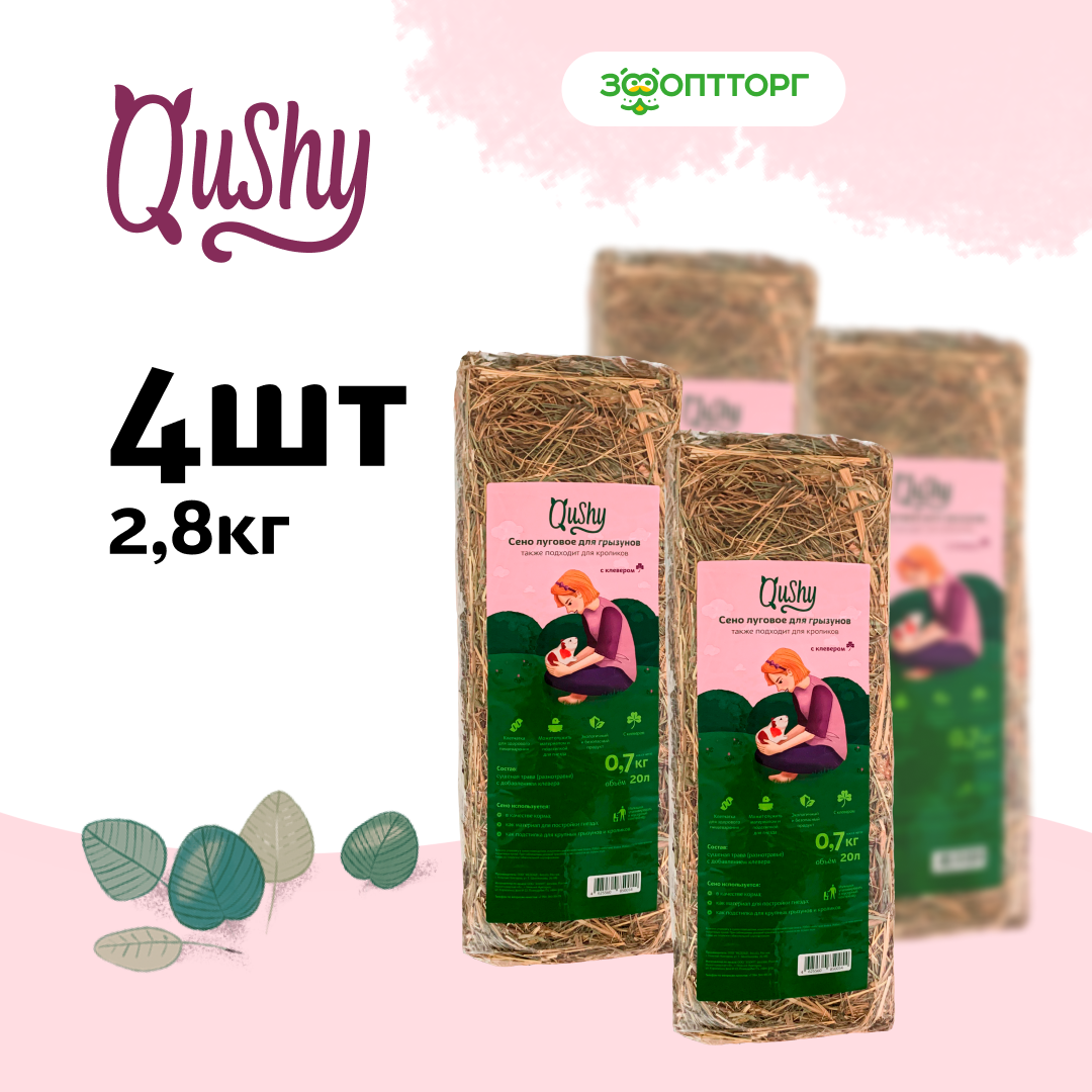 Купить Qushy сено луговое с клевером 700 г. упаковка 4 шт по 700 г.