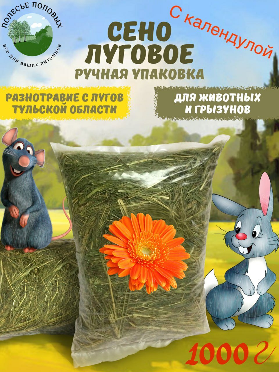 Сено луговое для животных и грызунов с календулой 1кг интересное: