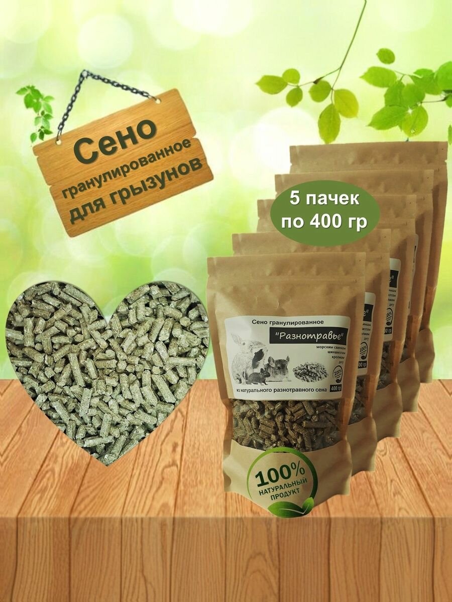 Сено для грызунов гранулированное Разнотравье, 5 пачек по 400 гр интересное: