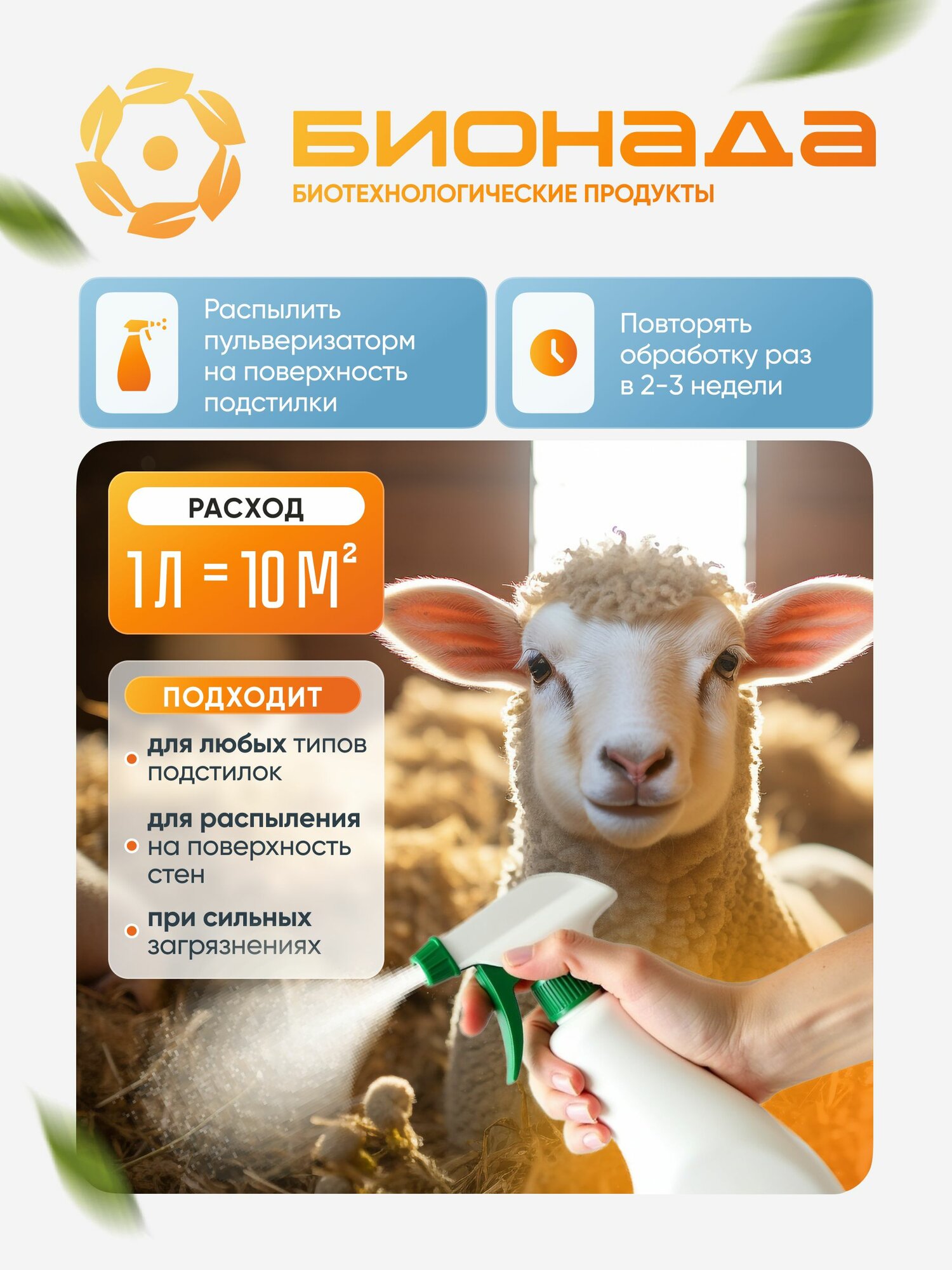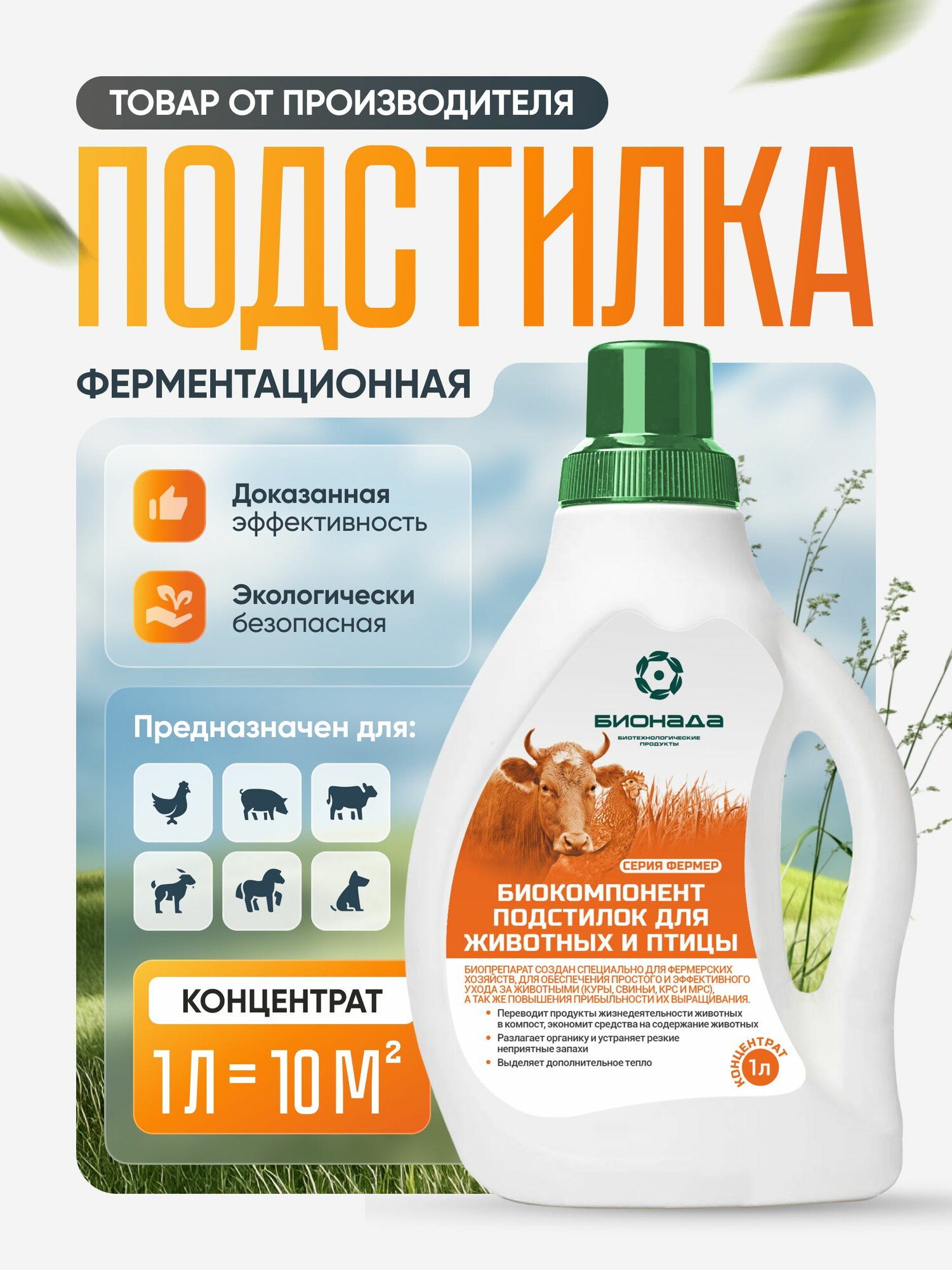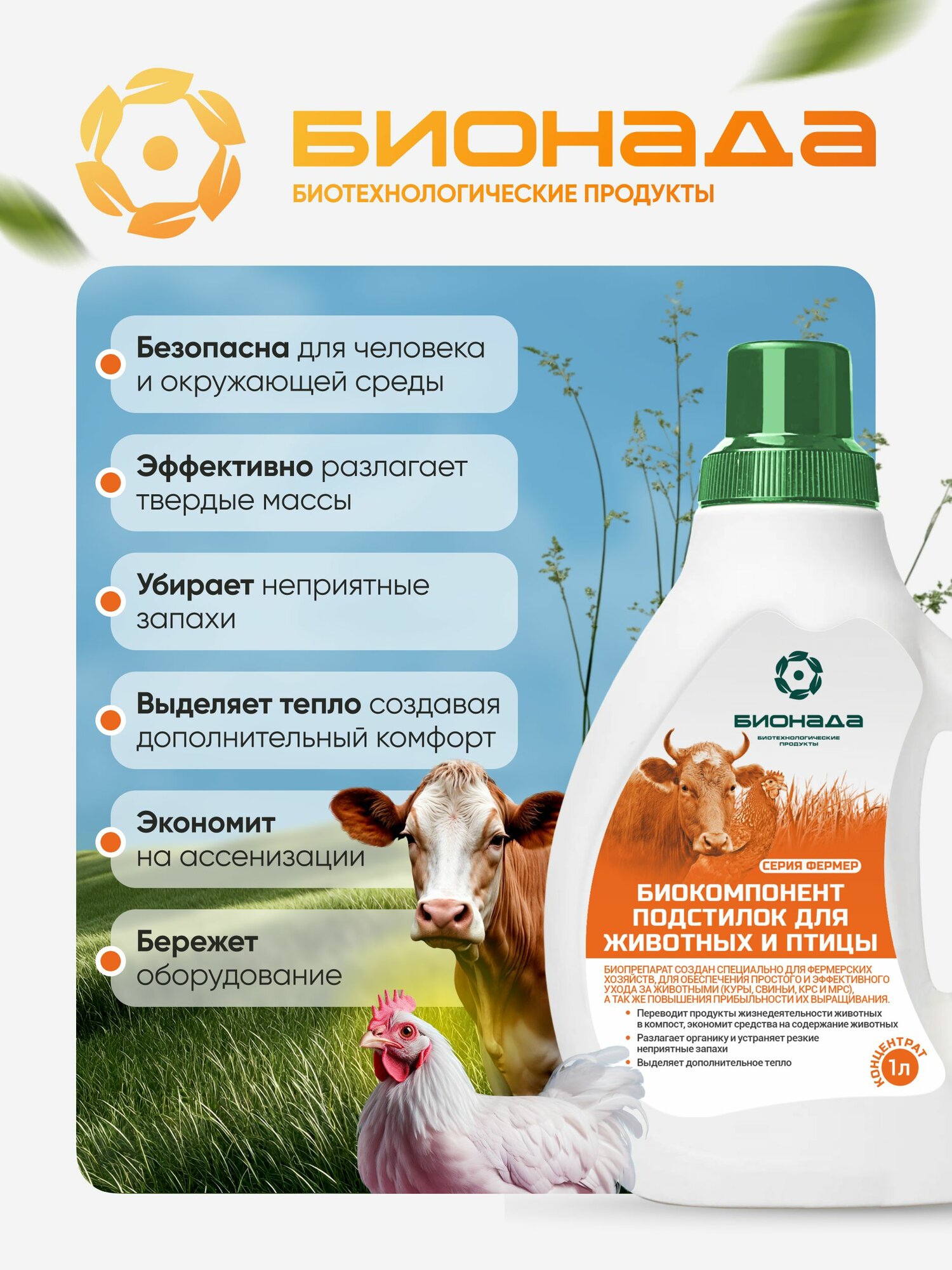 Средство (бактерии) подстилки для животных и птицы бионада - 1л интересное: