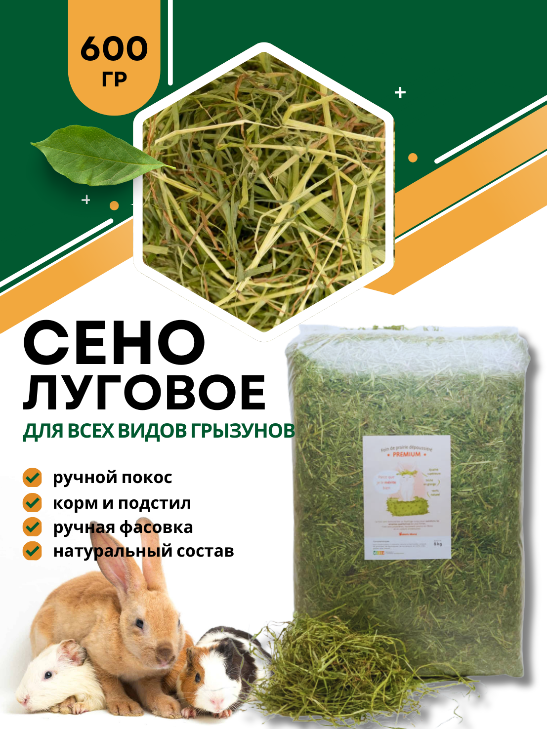 Сено для грызунов, кроликов, биоразлагаемое и гипоаллергенное, 0.6 кг интересное: