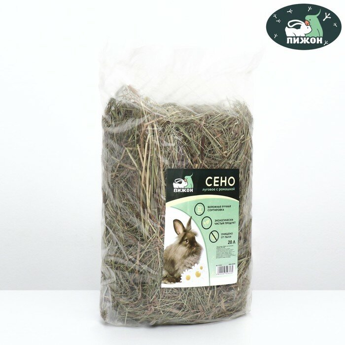 Купить Сено луговое «Пижон» лепестки ромашки, для грызунов, 20 л, 500 г, 2 штуки