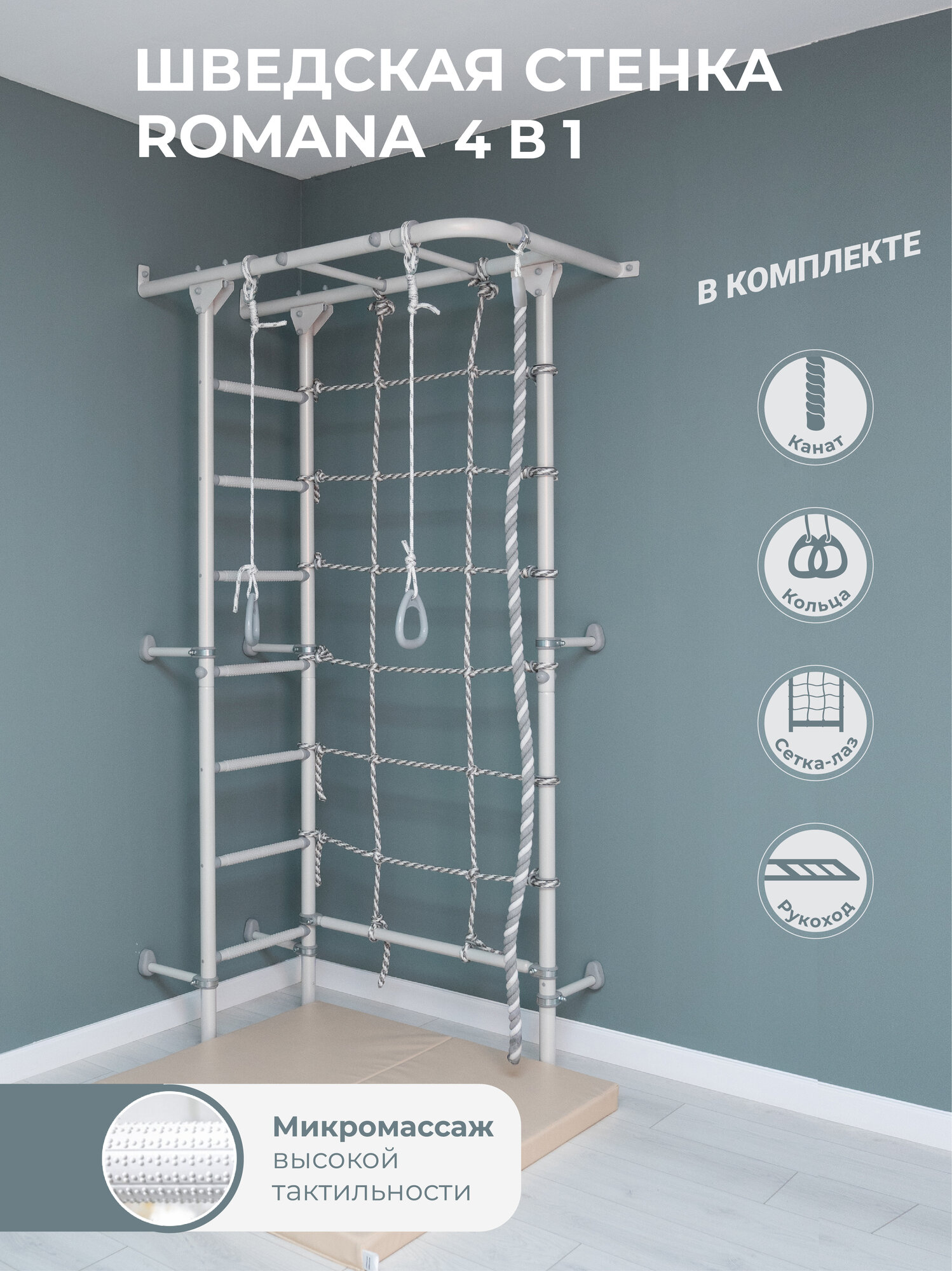 Romana Шведская стенка ROMANA S4, Цвет пастель (бело-серый)