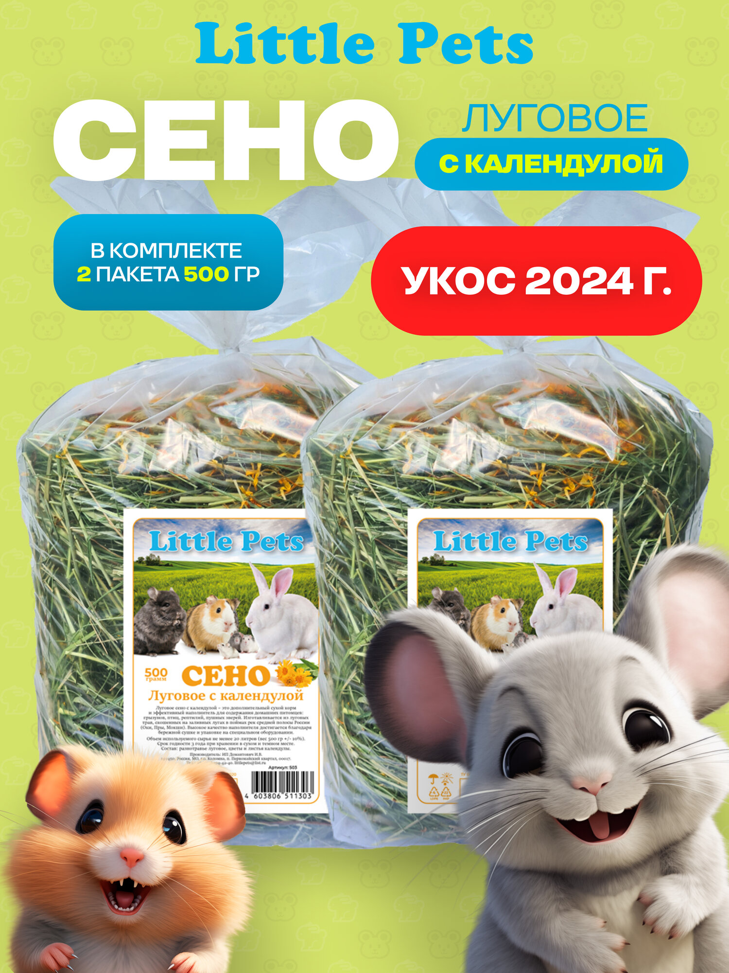 Купить Сено луговое с Календулой непрессованное 500гр х 2 шт