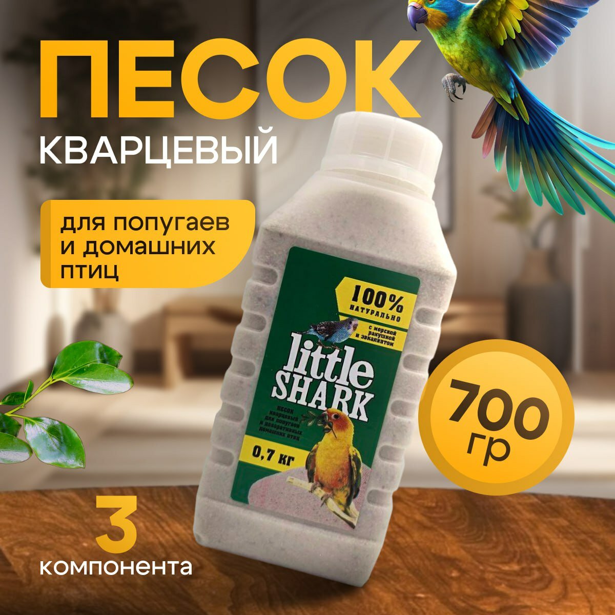 Кварцевый песок для попугаев и домашних птиц с морской ракушкой и эвкалиптом 0,7 кг фракция 0,1-0,3 интересное:
