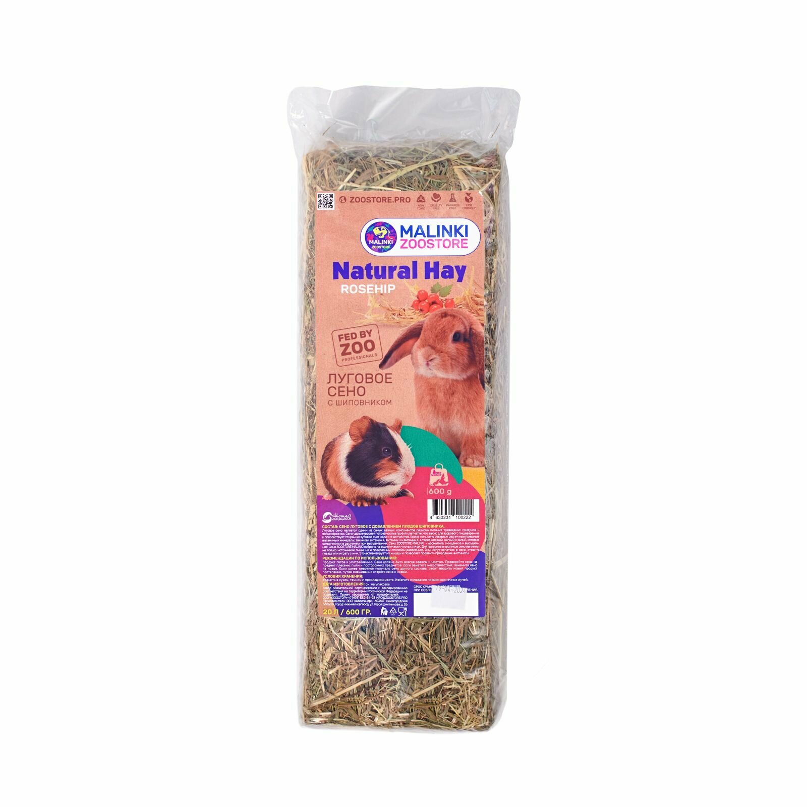 ZOOSTORE MALINKI Сено луговое "Natural Hay" с шиповником, 20 л / 600 гр интересное: