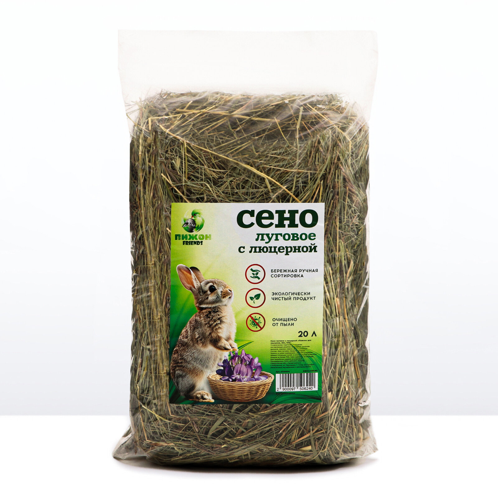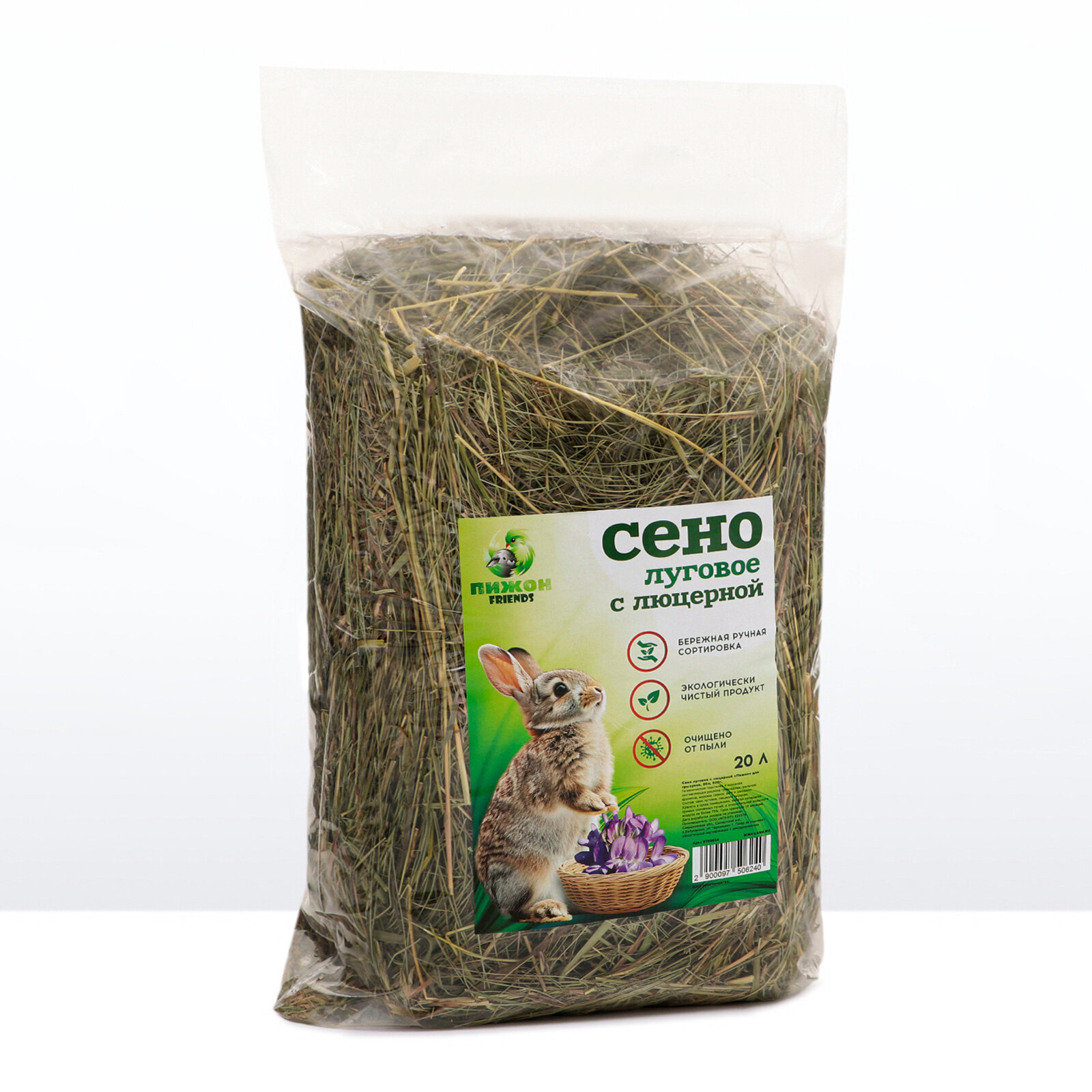 Сено луговое с люцерной для грызунов, 20 л, 500 г интересное: