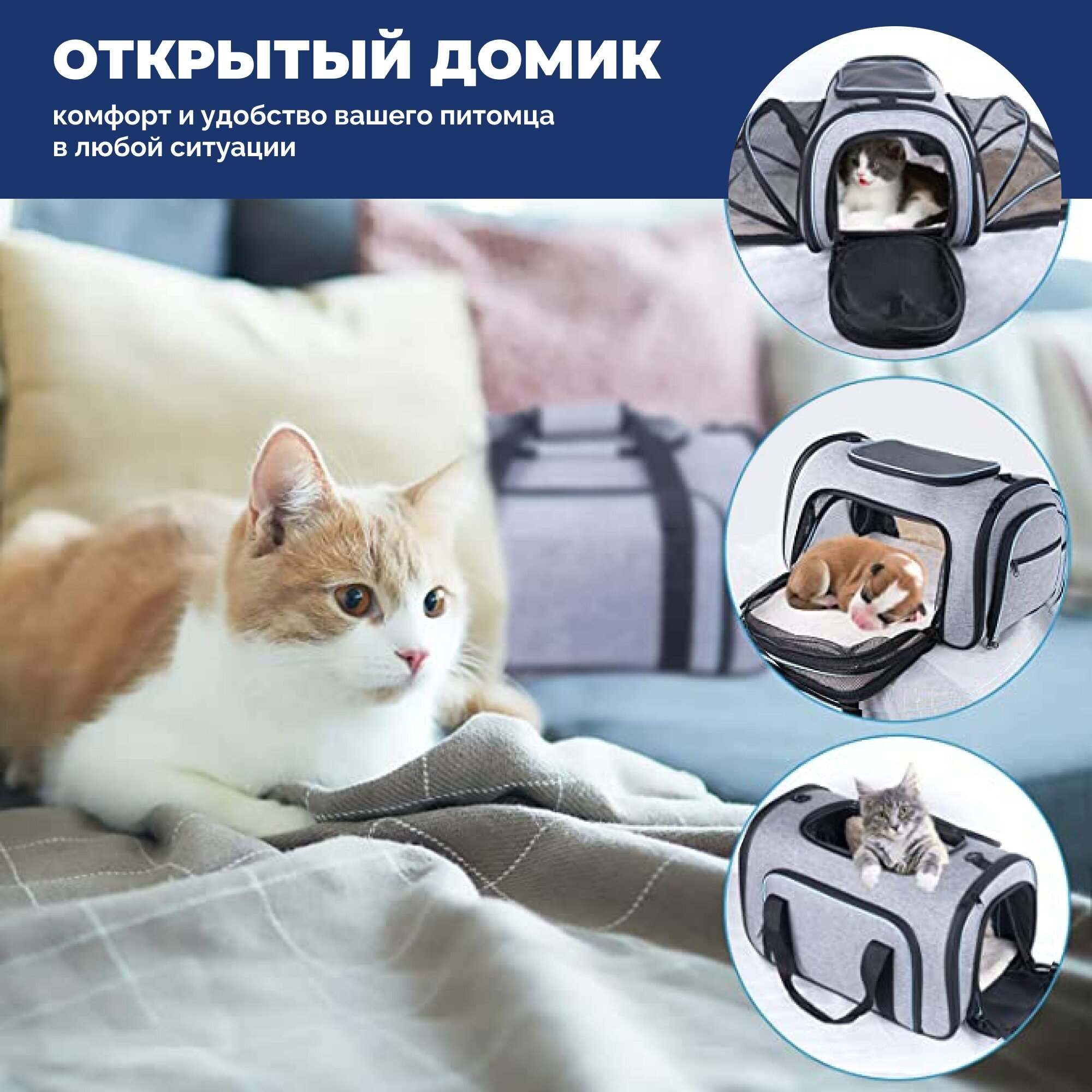 Сумка-переноска JuJubak, для средних пород кошек, собак и кроликов, серая интересное: