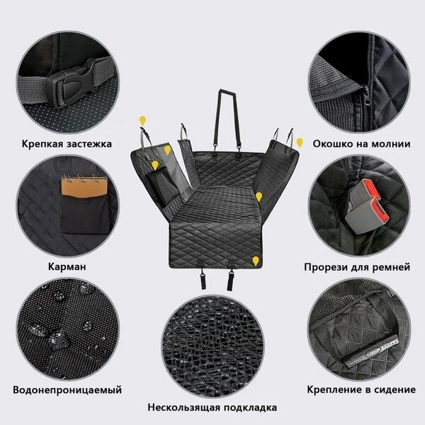Купить Автогамак для перевозки животных «Место Бро», цвет черный, влагозащ. ткань, ремень для крепл. к ошейнику, 133*140см