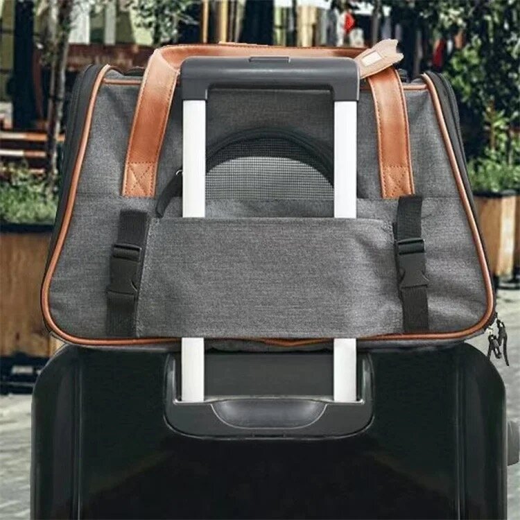 Мягкая переносная дорожная сумка для собак и кошек темно-серого цвета. Размер S.