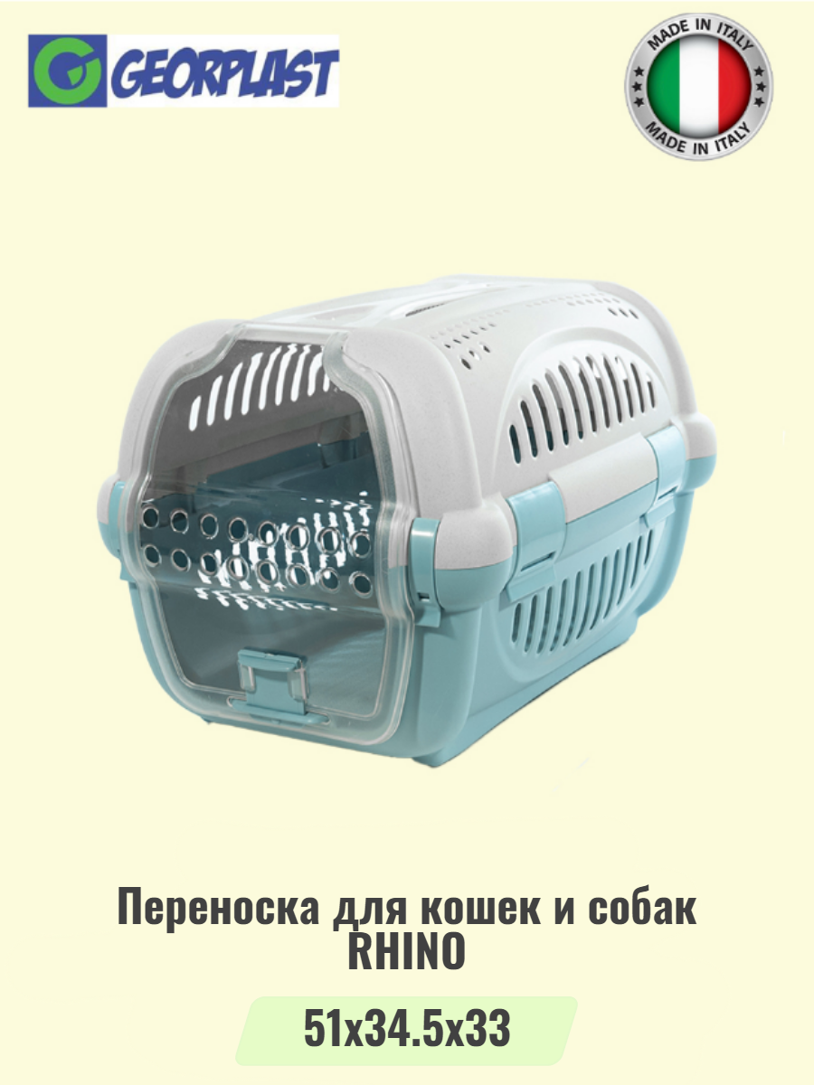 Переноска для кошек и собак GEORPLAST RHINO с пластиковой дверцей голубая интересное: