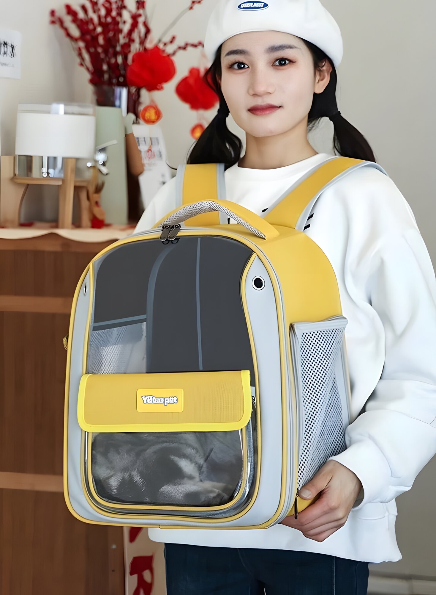 Купить Рюкзак - переноска для кошек, с вставкой из дышащей сеткой, карманом, цвет серый