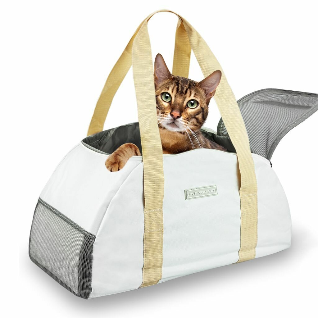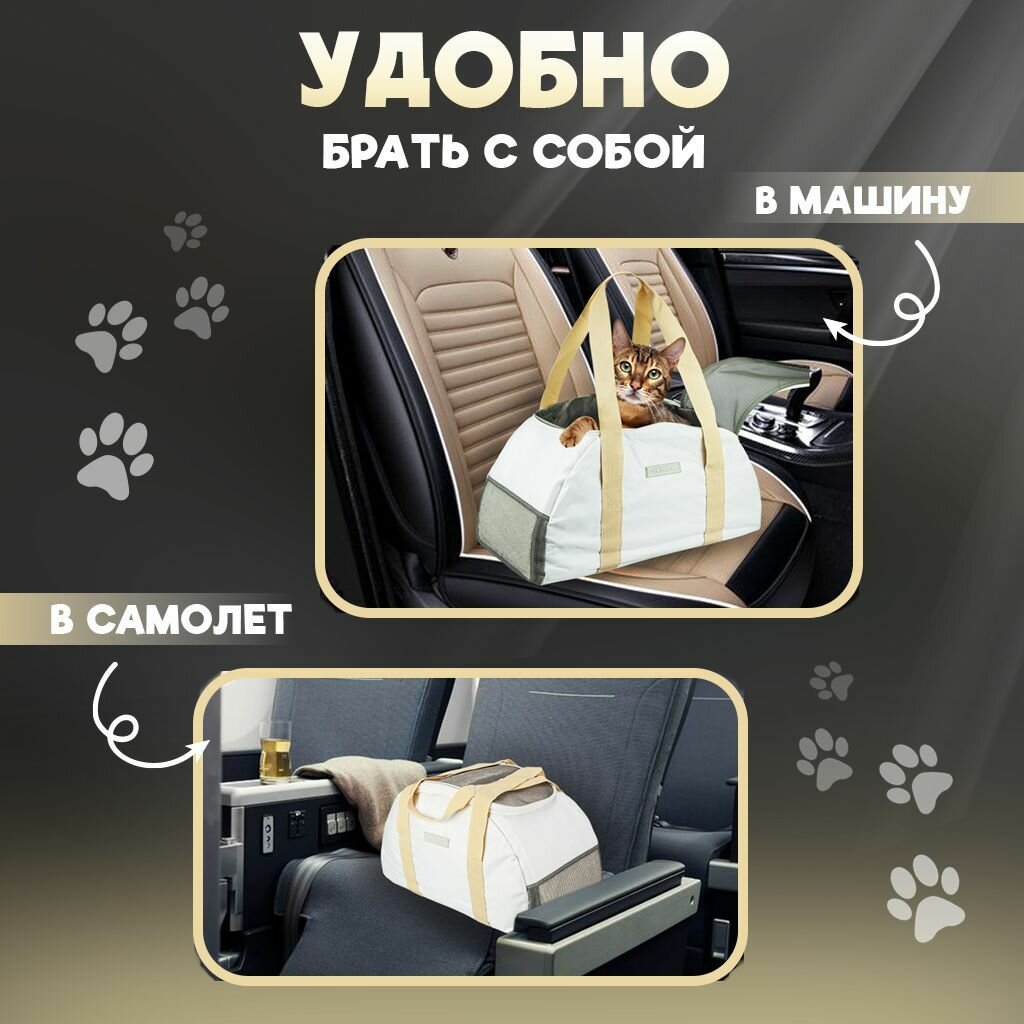 Переноска для кошек и собак в поездку, сумка для животных на плечо, для самолета, бело-бежевая до 12 кг интересное: