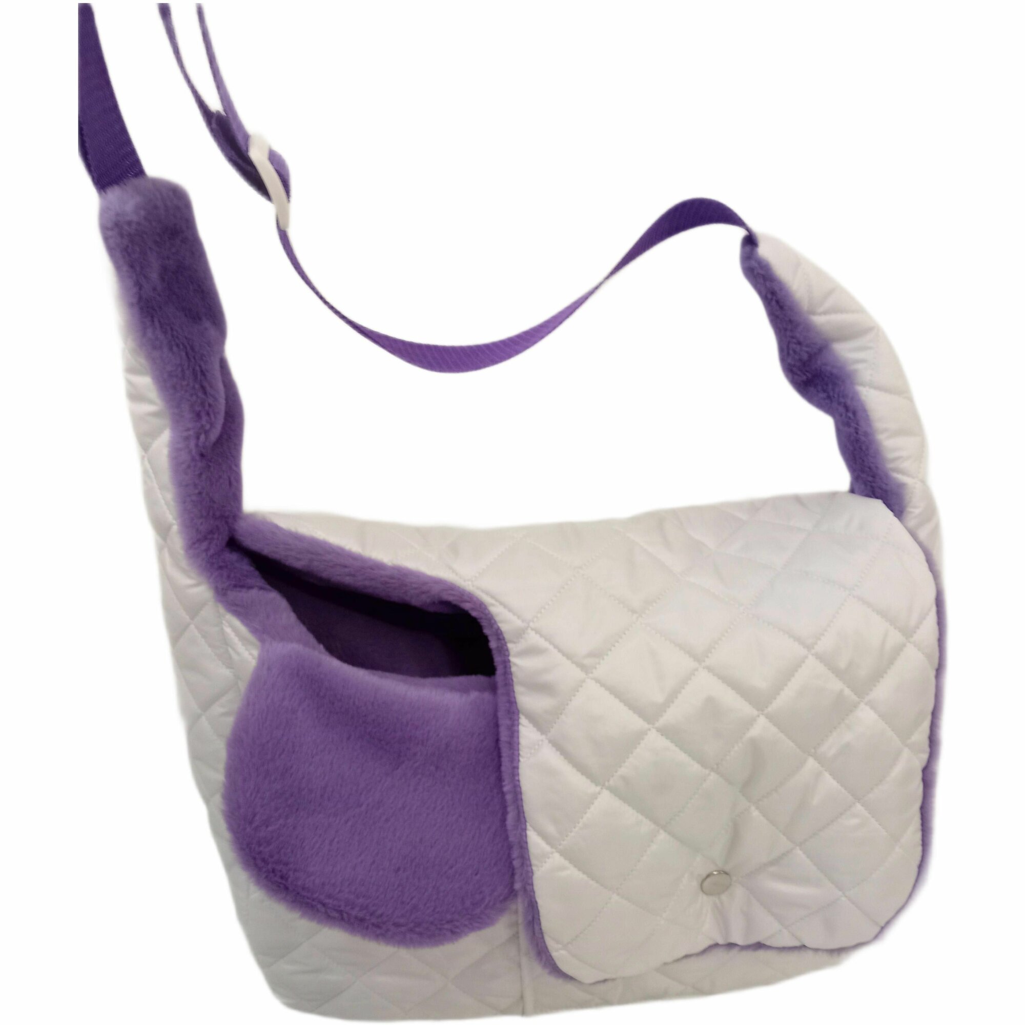 Купить Зимняя Сумка-переноска для собак 2,5-3,5 кг, размер S 32см Х 12см Х 20см, белая с сиреневым мехом