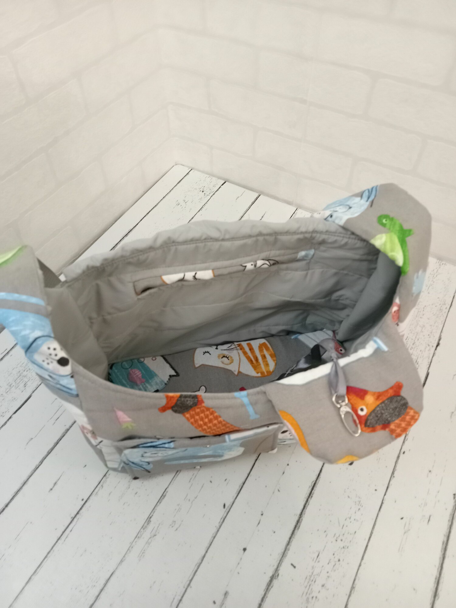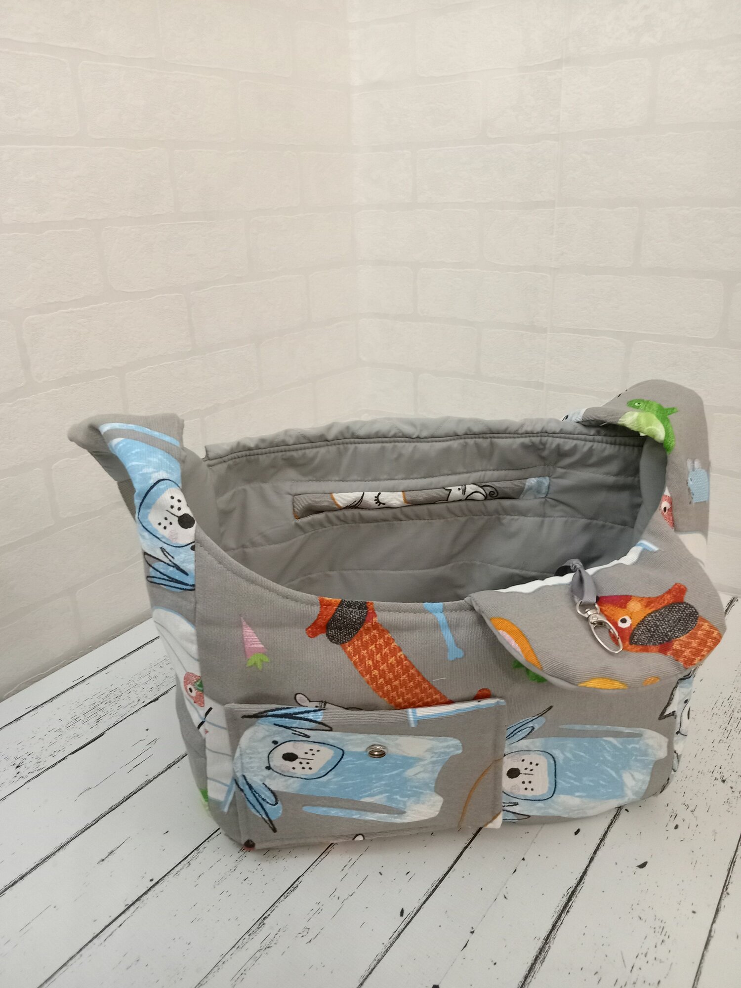Зимняя Сумка-переноска для собак 3-4 кг, размер 36см Х 14см Х 25см, Серая на левое бедро