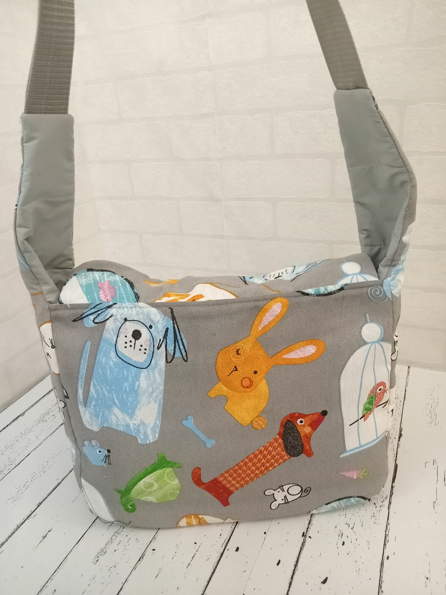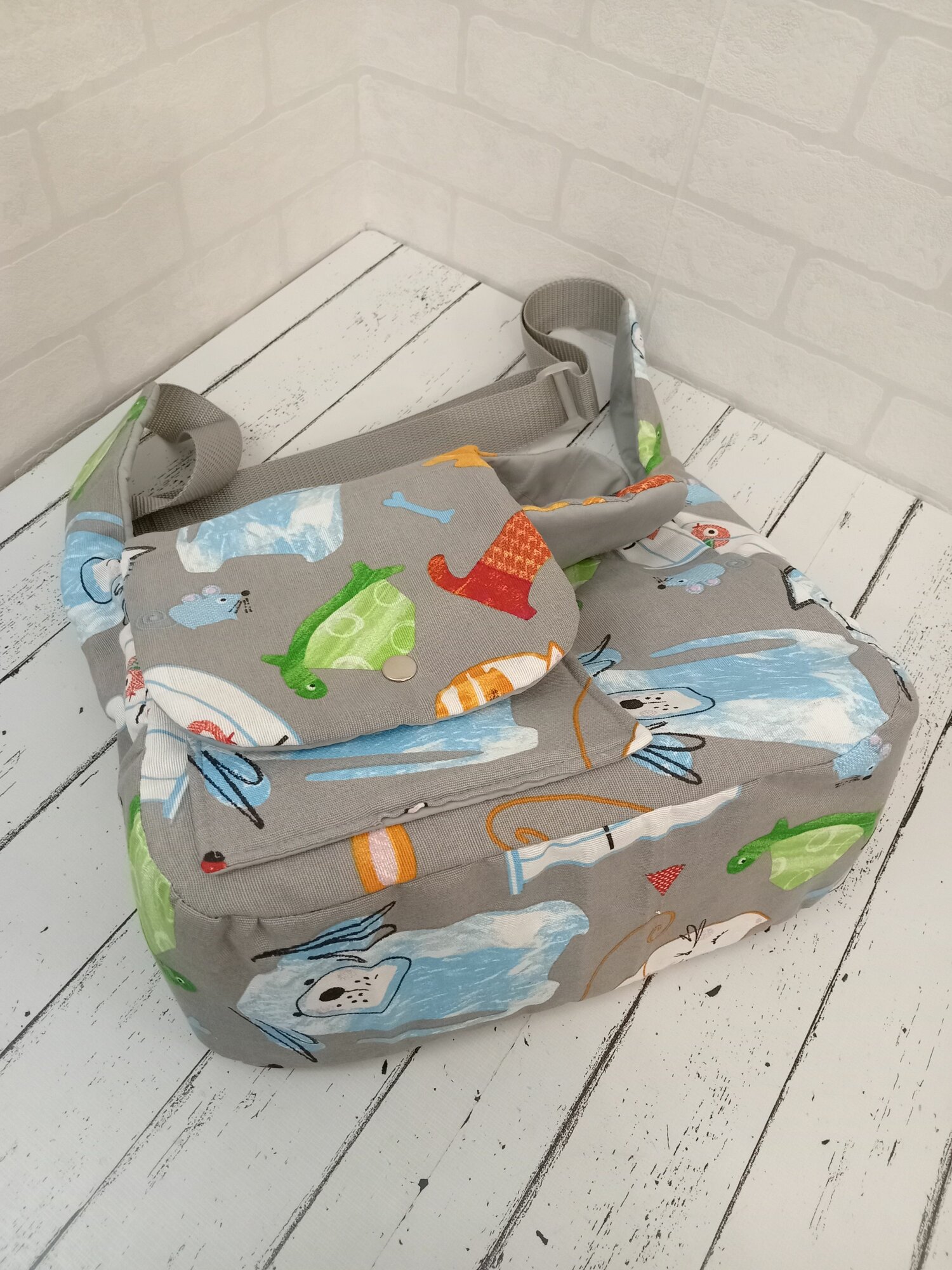 Купить Летняя Сумка-переноска для собак до 3 кг, размер S 32см Х 12см Х 15/20 см, серая. На правое бедро