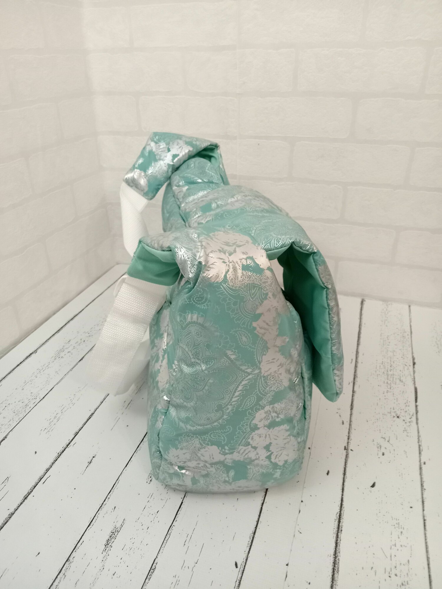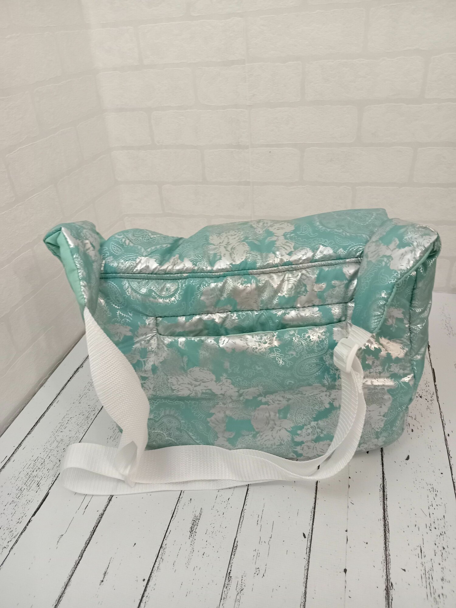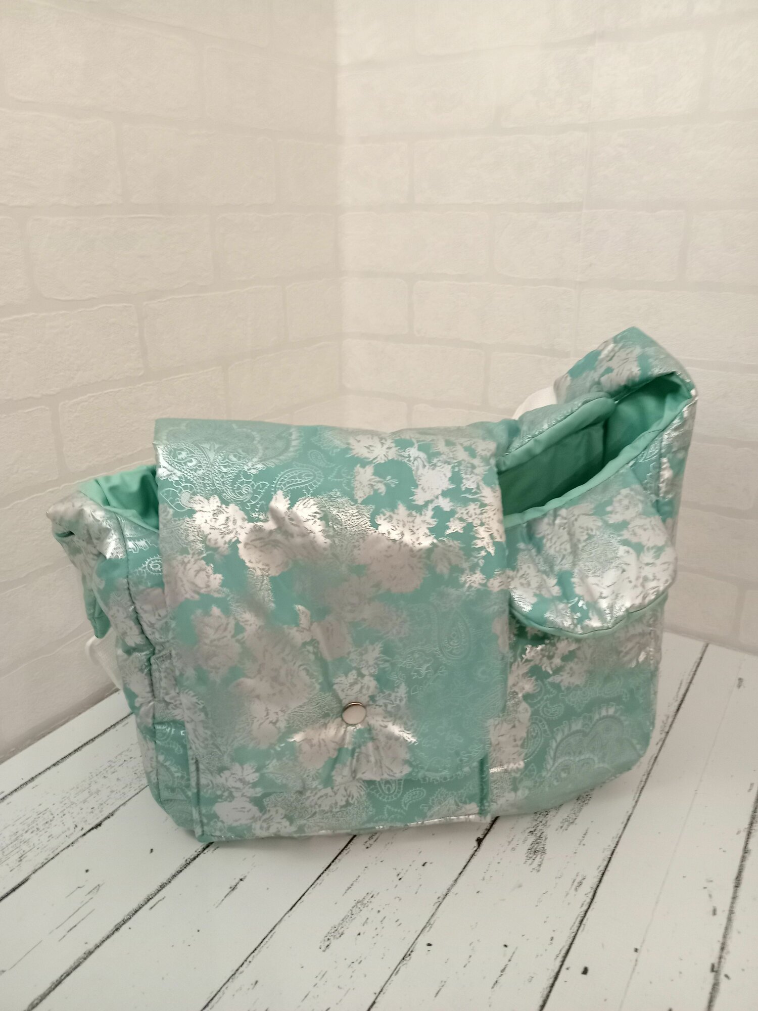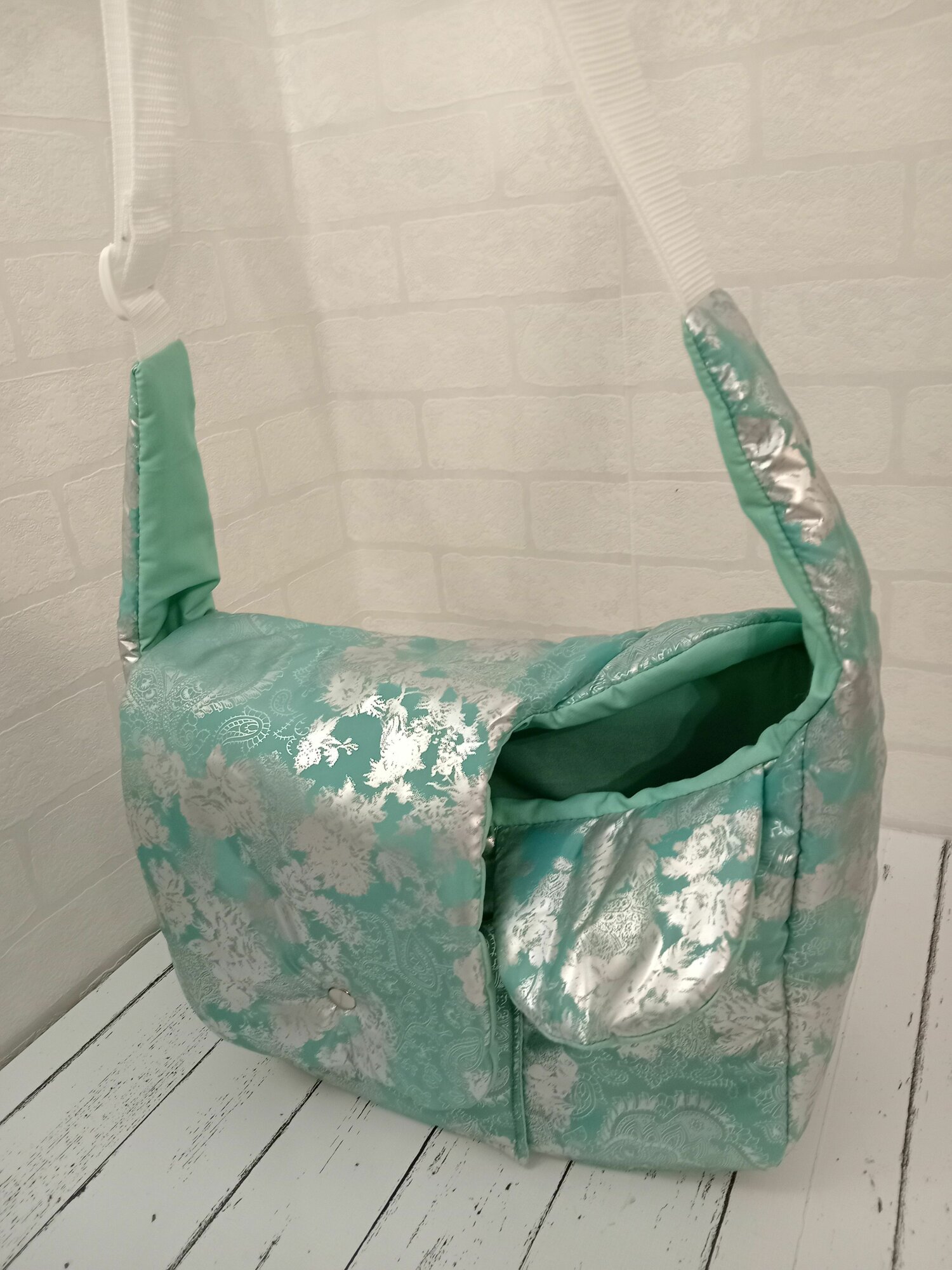 Весенняя Сумка-переноска для собак до 2-3 кг, размер S 32см Х 12см Х 15/20 см, цвет Сиреневый с бирюзой. На левое бедро