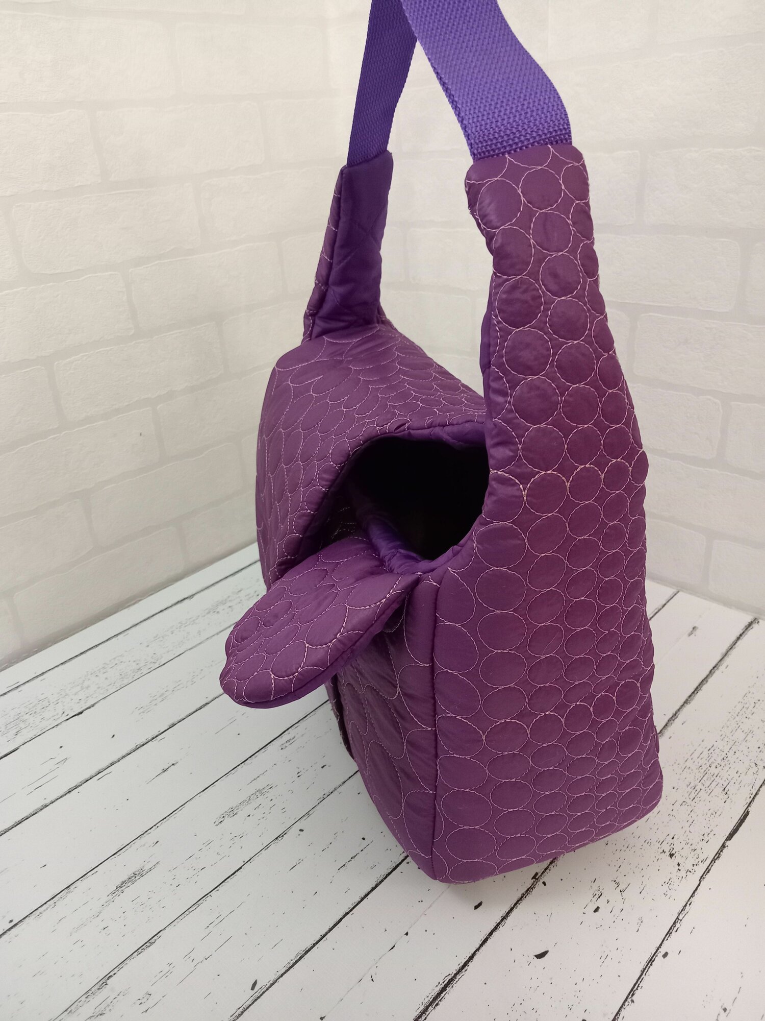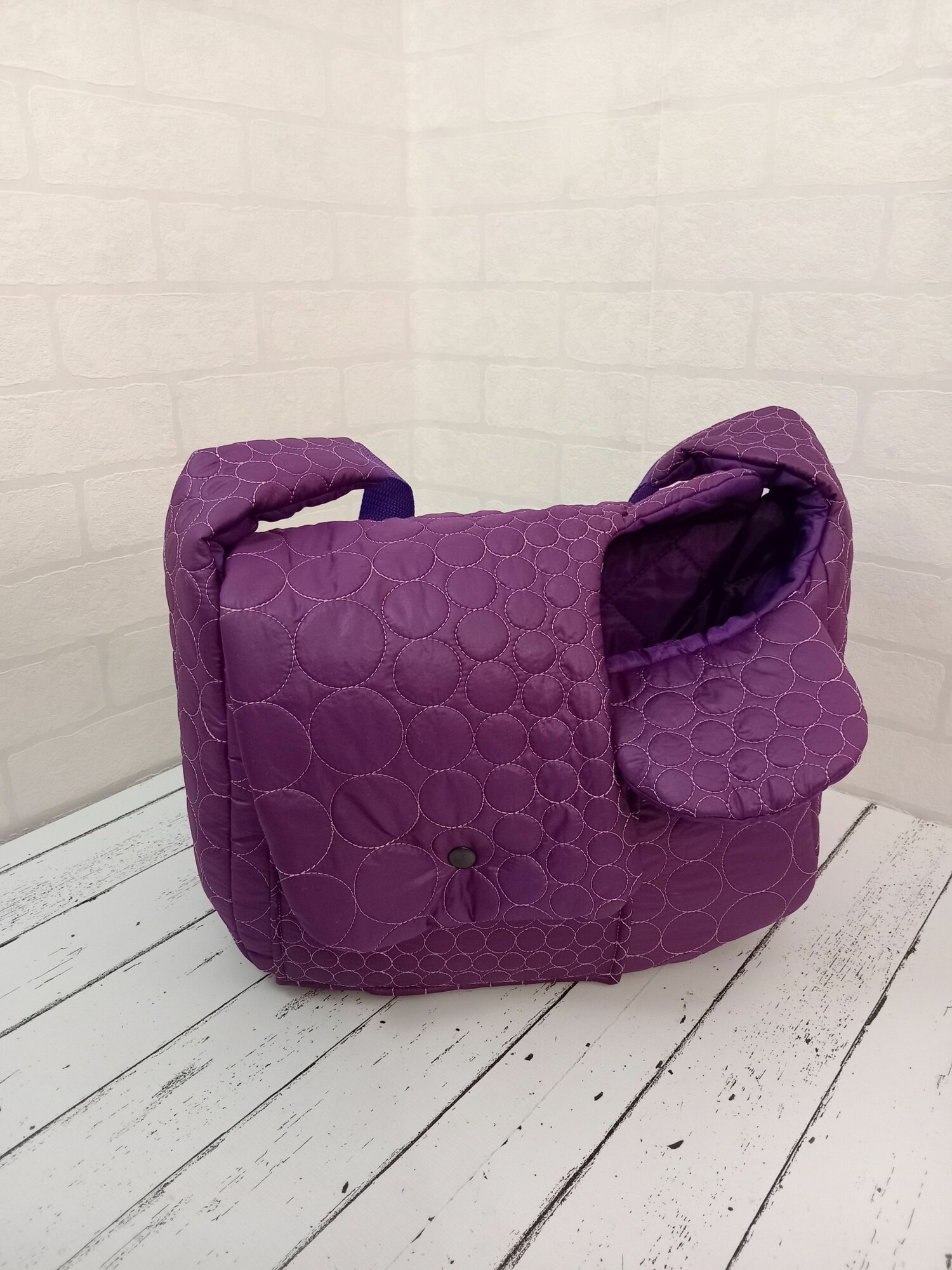 Летняя Сумка-переноска для собак 2- 3 кг, размер S 32см Х 12см Х 15/20 см, фиолетовая. На левое бедро