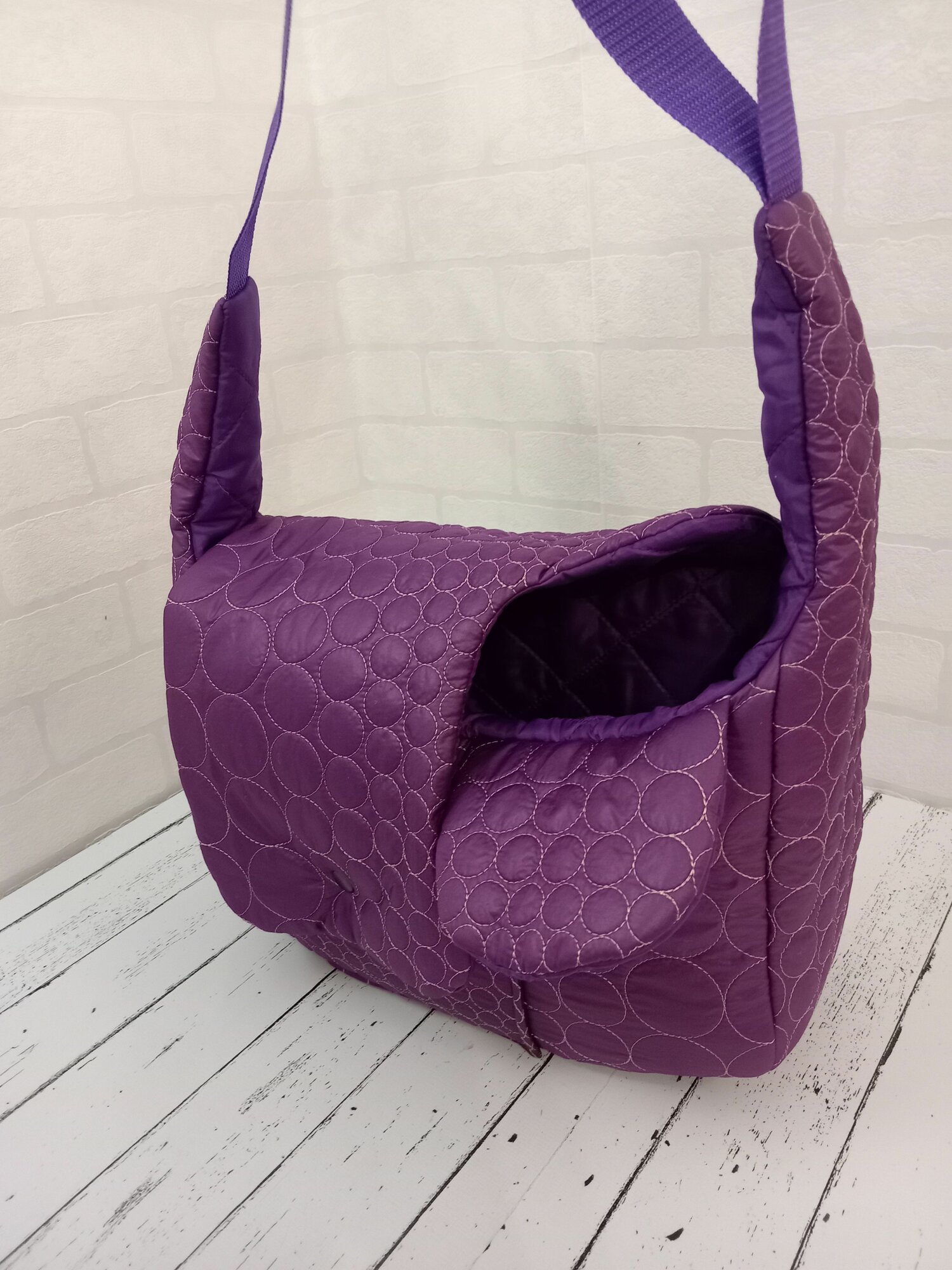 Летняя Сумка-переноска для собак весом 2-3 кг, размер S 32см Х 12см Х 15/20 см, фиолетовая. На правое бедро