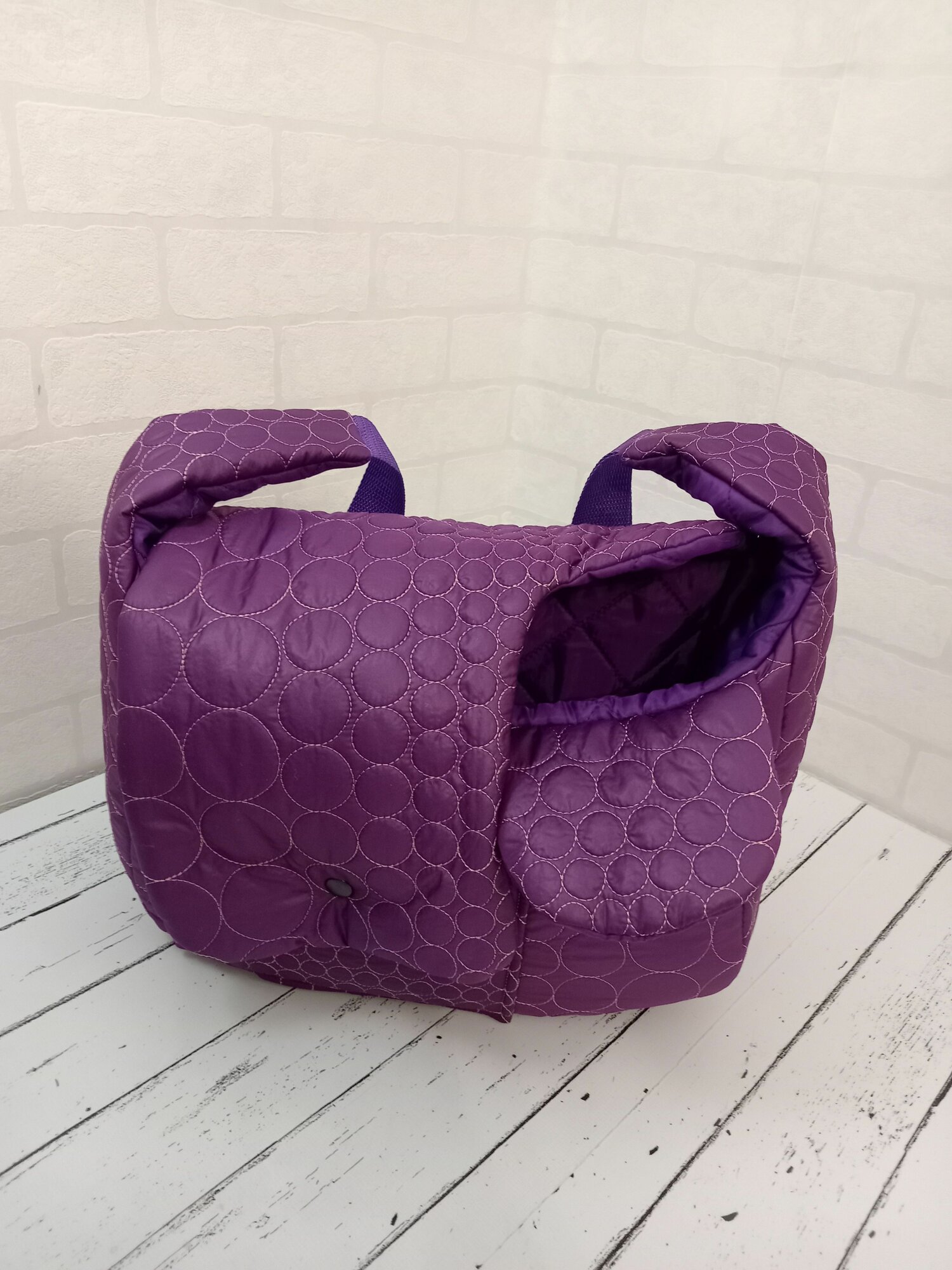 СохранитьЗимняя Сумка-переноска для собак весом 2-3 кг, Фиолетовая размер S (32х12х20), На правое бедро интересное: