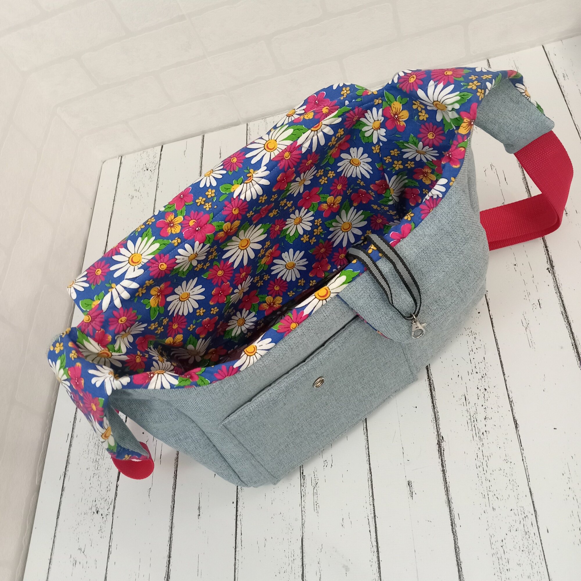 СохранитьЛетняя Сумка-переноска для собак весом 2-3 кг, размер S 32см Х 12см Х 15/20 см, Джинс Ромашка. На правое бедро интересное: