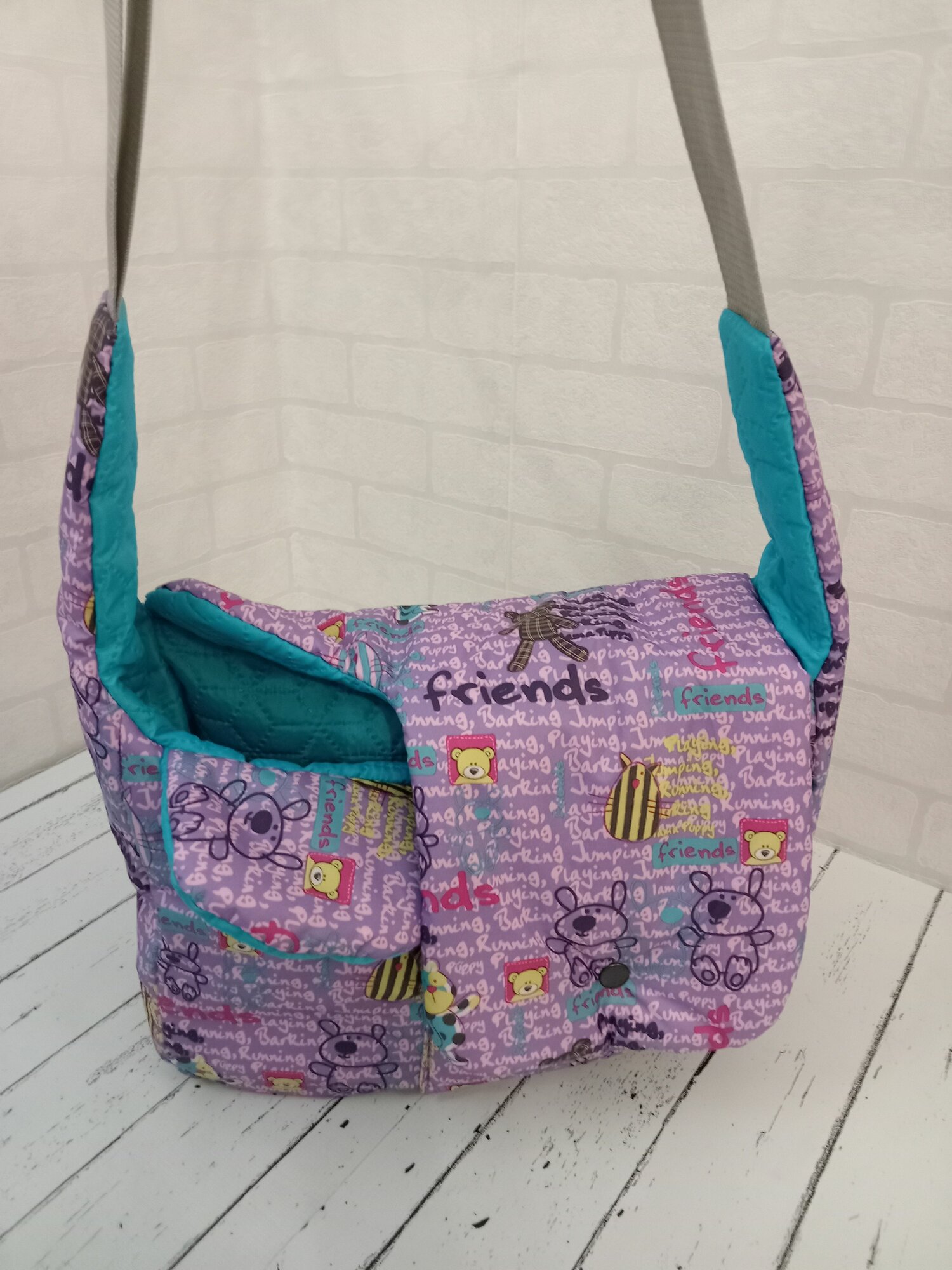 СохранитьВесенняя Сумка-переноска для собак до 2-3 кг, размер S 32см Х 12см Х 15/20 см, цвет Сиреневый с бирюзой. На левое бедро интересное: