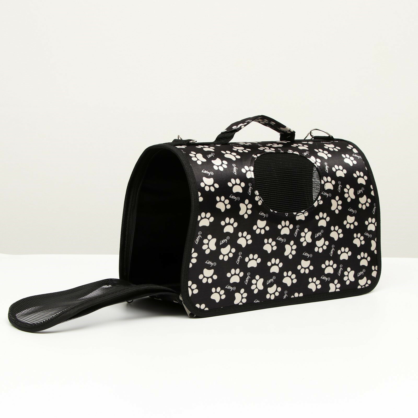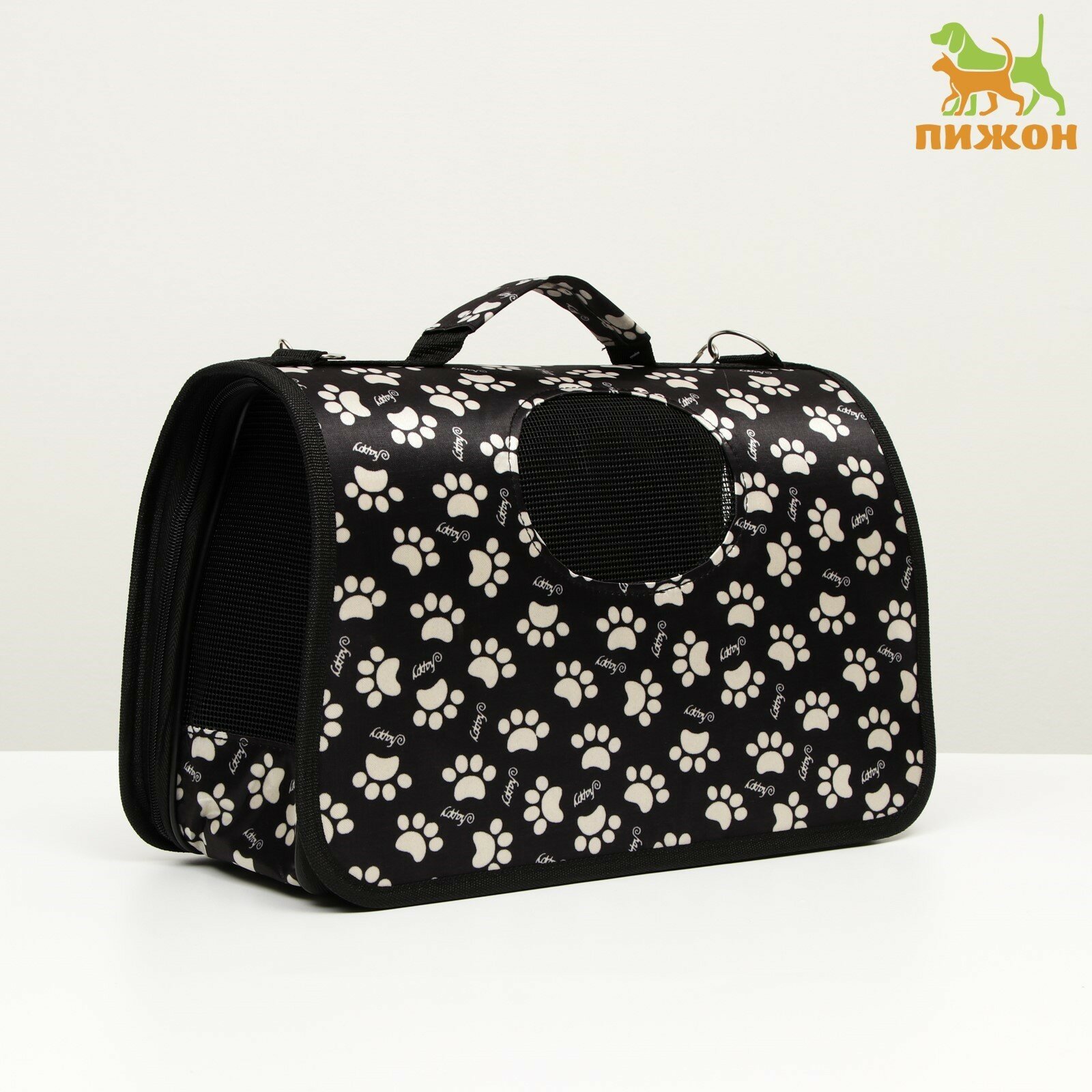 Купить Сумка-переноска каркасная "Лапки Happy" , размер М, 40 х 21 х 27 см, чёрная