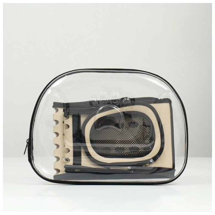 Сумка-переноска с органайзером и иллюминатором, 43 х 24 х 28 см, бежевая, 10093153