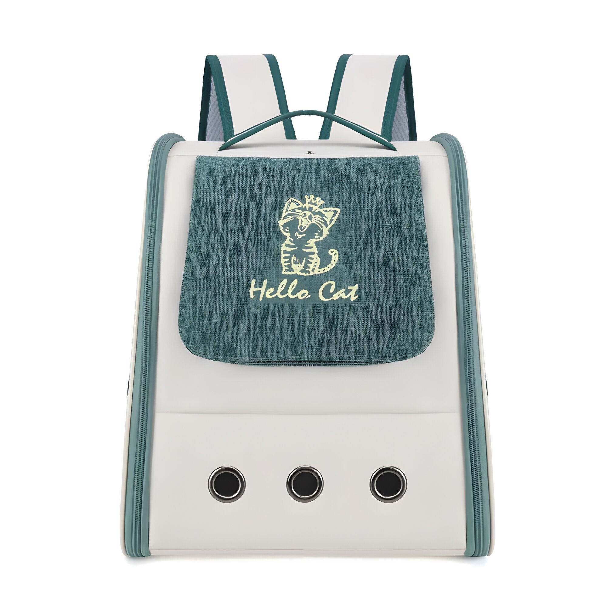 Рюкзак-переноска "Милый Кот", для домашних животных, водонепроницаемый, белый с зеленым