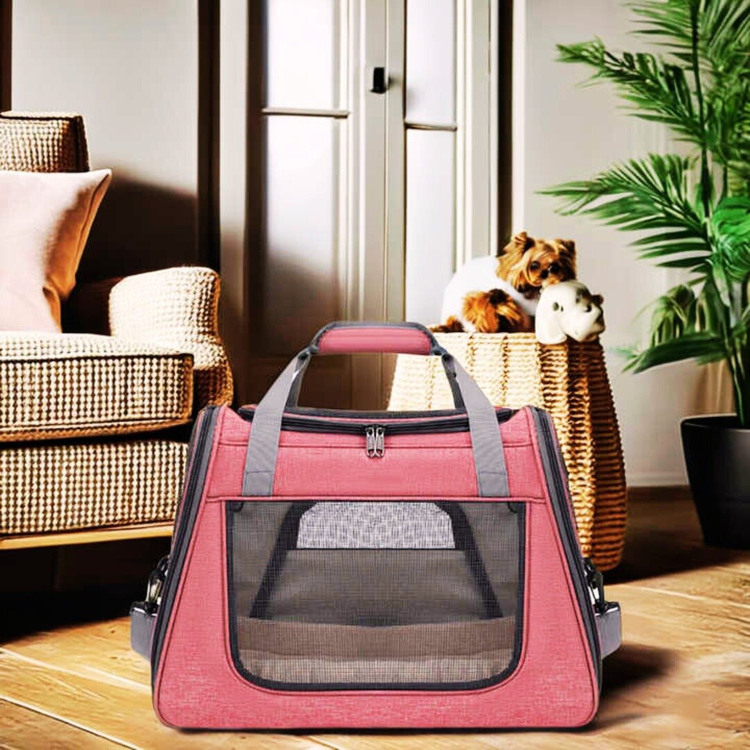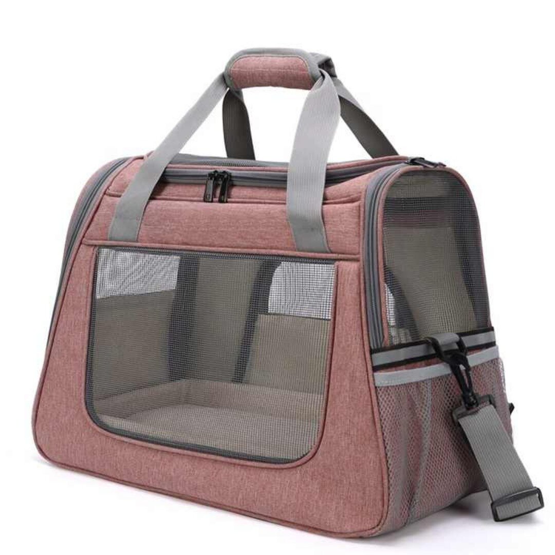 Сумка переноска для животных 45х23х35 см / Переноска для кошек и собак мелких пород с подстилкой-матрасиком и окошками из сетки / розовый