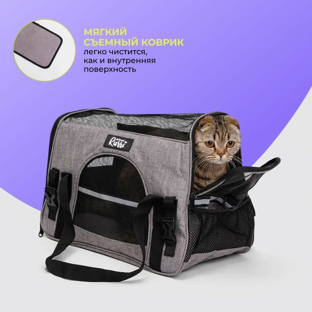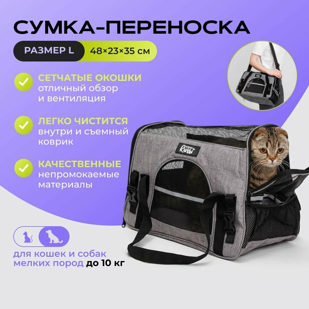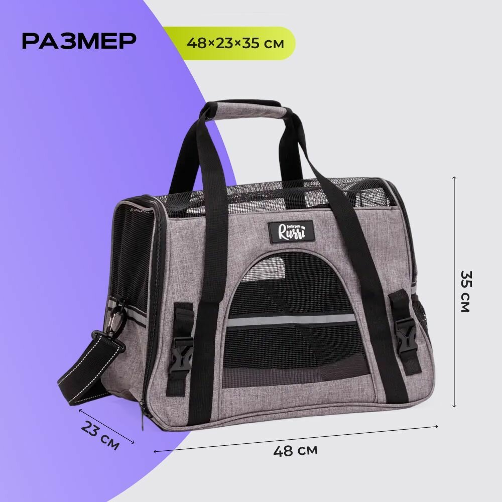 Сумка-переноска для кошек и собак мелкого размера, L, 48х25х33 см, серая интересное: