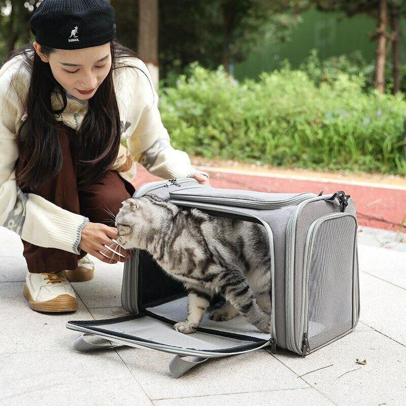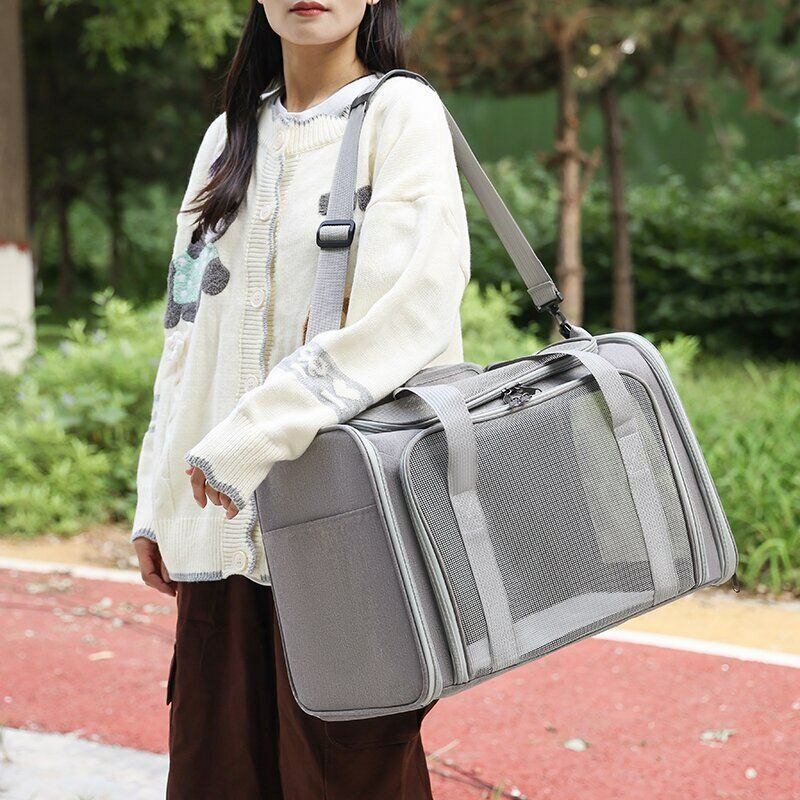 Купить Сумка-переноска для кошек и собак средних пород складная серая