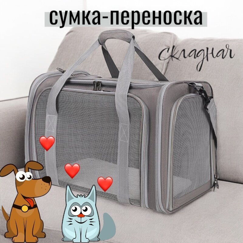 Сумка-переноска для кошек и собак средних пород складная серая интересное: