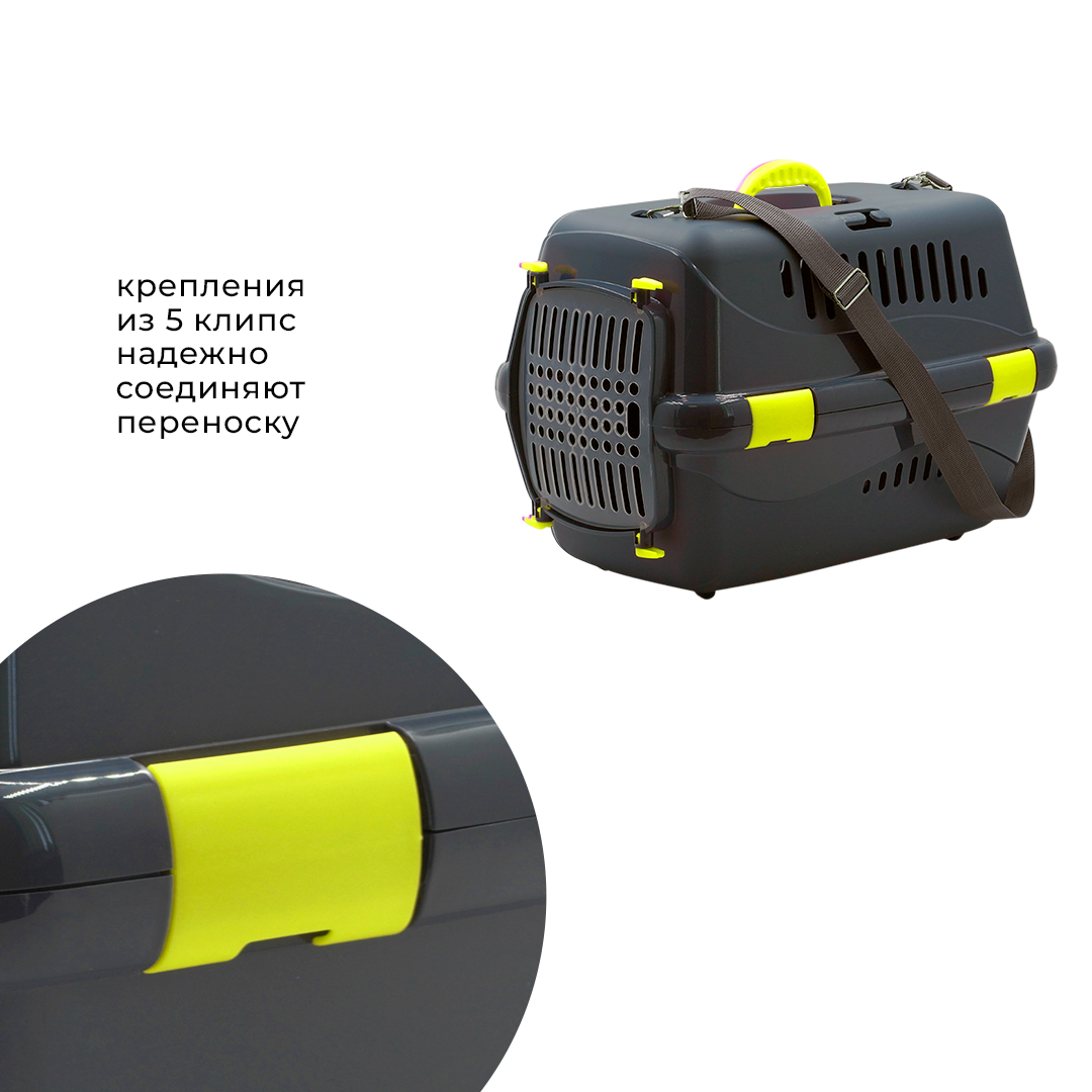 Пластиковая клиппер-переноска для кошек и собак ZOOSET, 42х29х29,5 см, с плечевым ремнем, серая/желтая