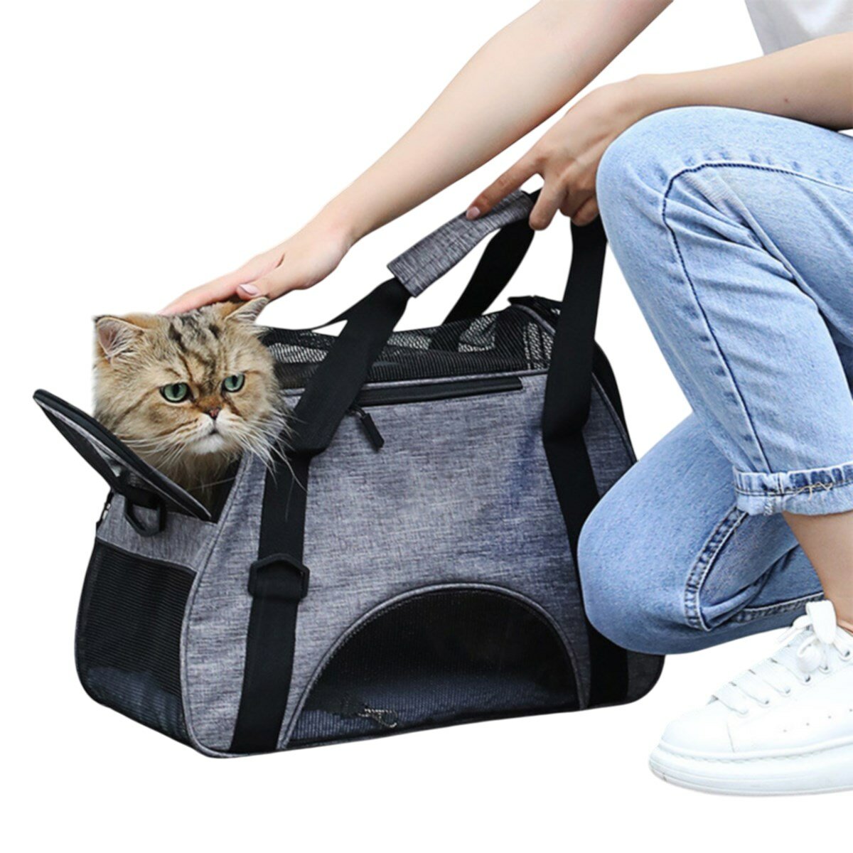 Сумка-переноска для кошек и собак, Bentfores (М: 47 х 27 х 25 см, серый, 35194)