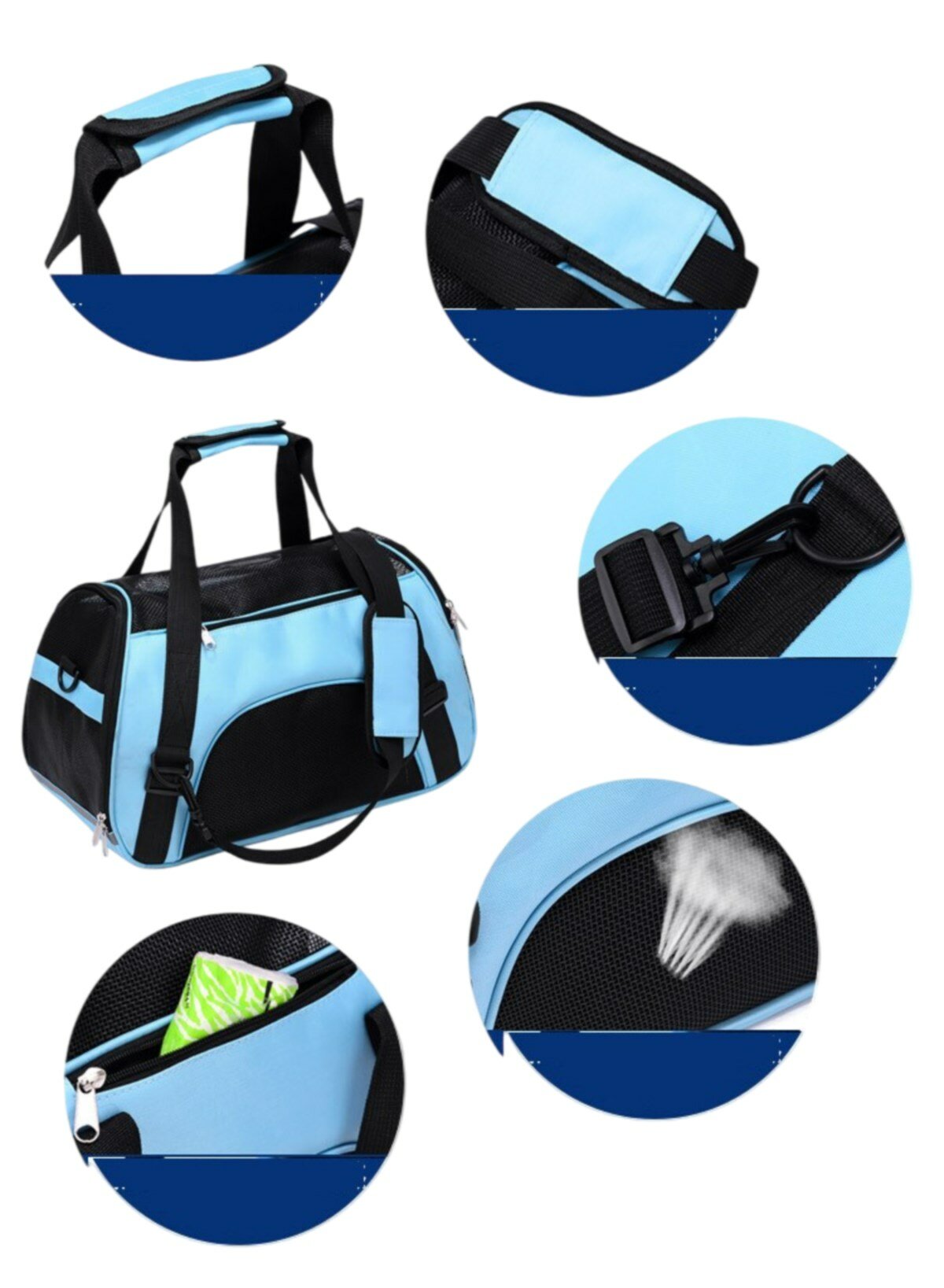 Сумка-переноска для кошек и собак, Bentfores (М: 47 х 27 х 25 см, голубой, 35196)