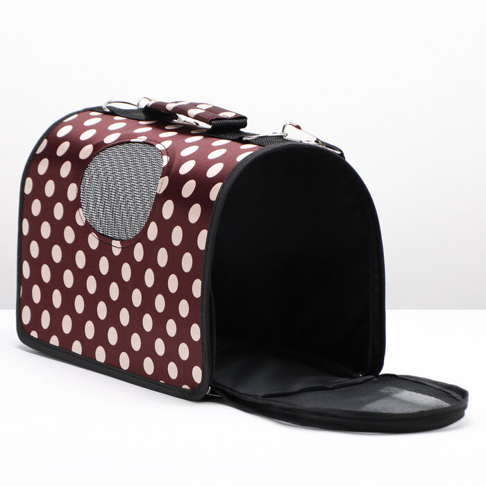 Купить Сумка - переноска для животных "Горошек", коричневая, размер S, 37,5 х 17 х 22 см, 10093151