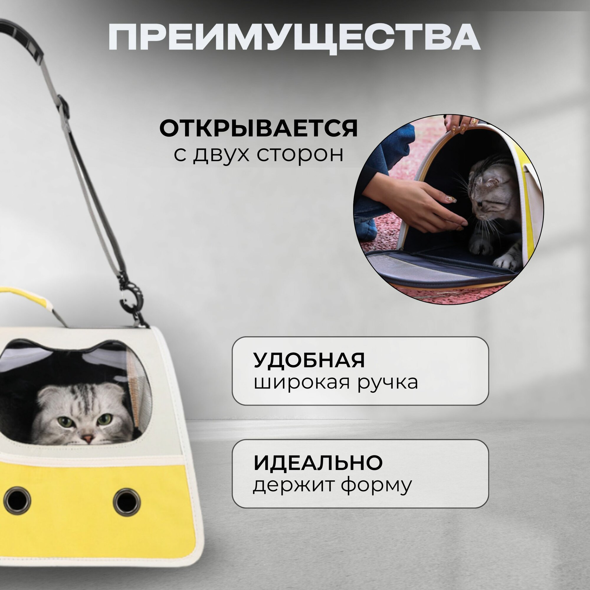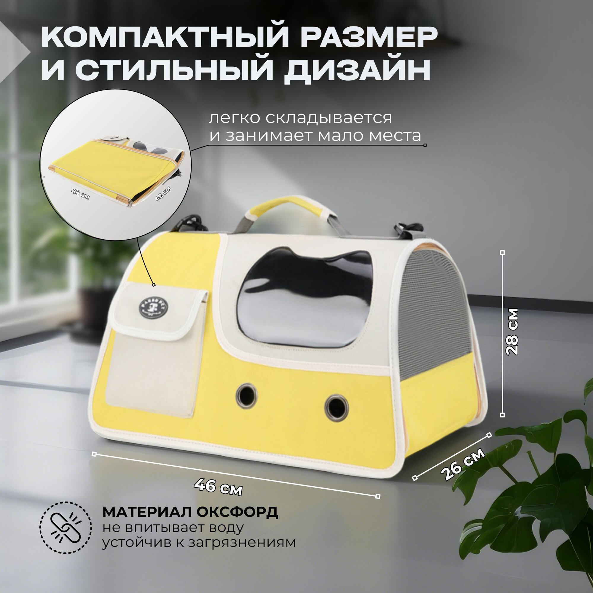 Сумка-переноска Pets & Friends, для кошек и собак до 8 кг, желтая, оксфорд, складная интересное: