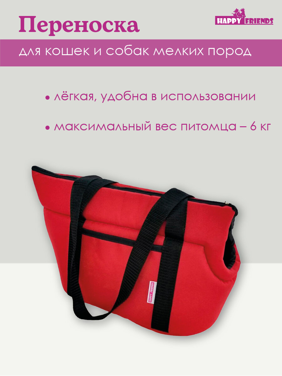 Сумка-переноска для животных красная "Happy Friends", 53x25x24см интересное: