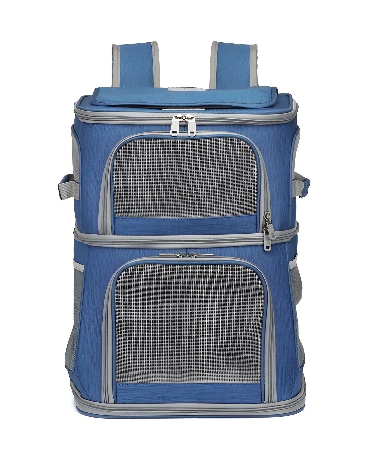 Купить Переноска-рюкзак, для двух кошек, оксфорд, гигиенический коврик, складная, синяя