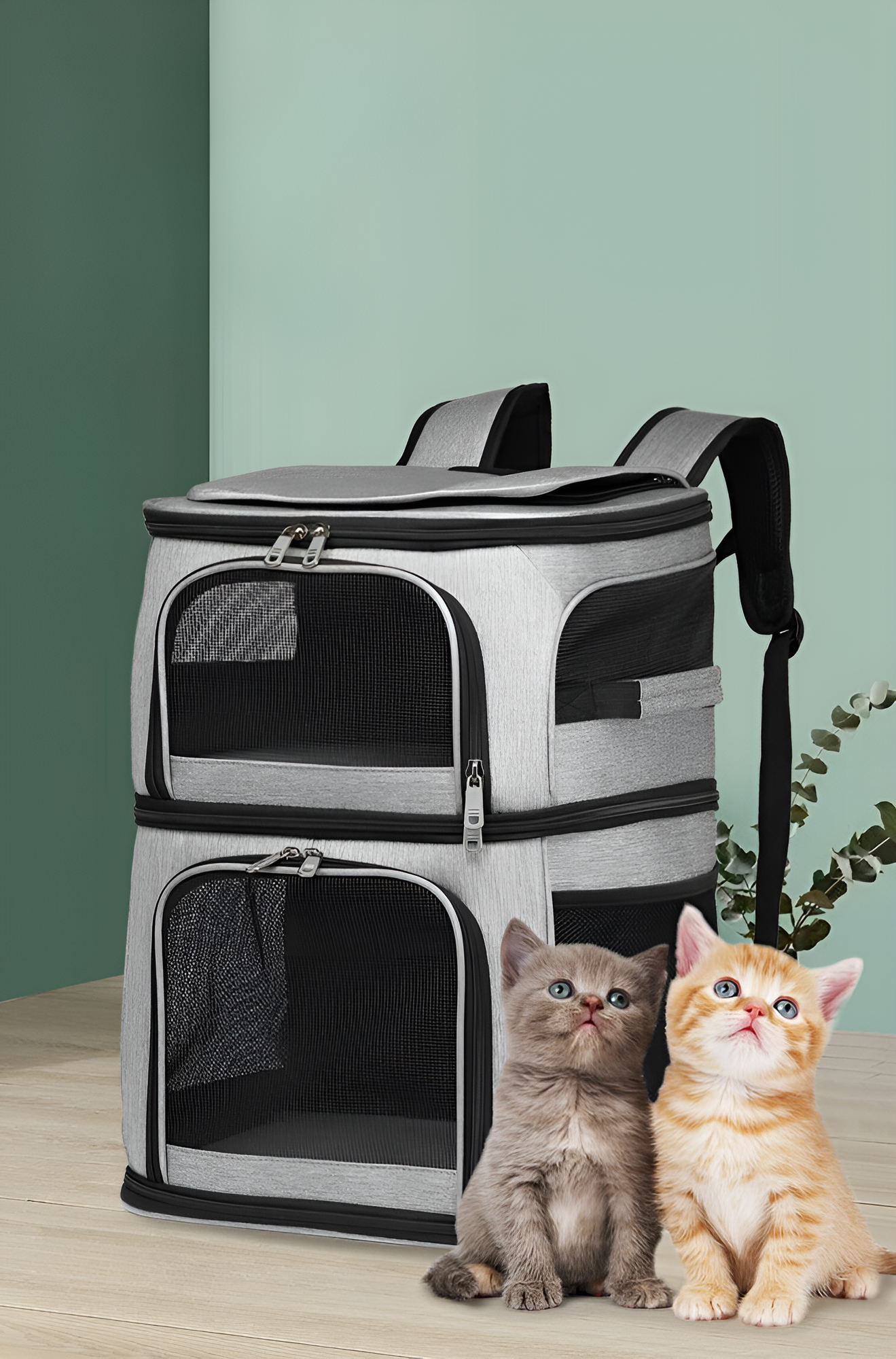 Переноска-рюкзак, для двух кошек, складная, гигиенический коврик, серая/черная