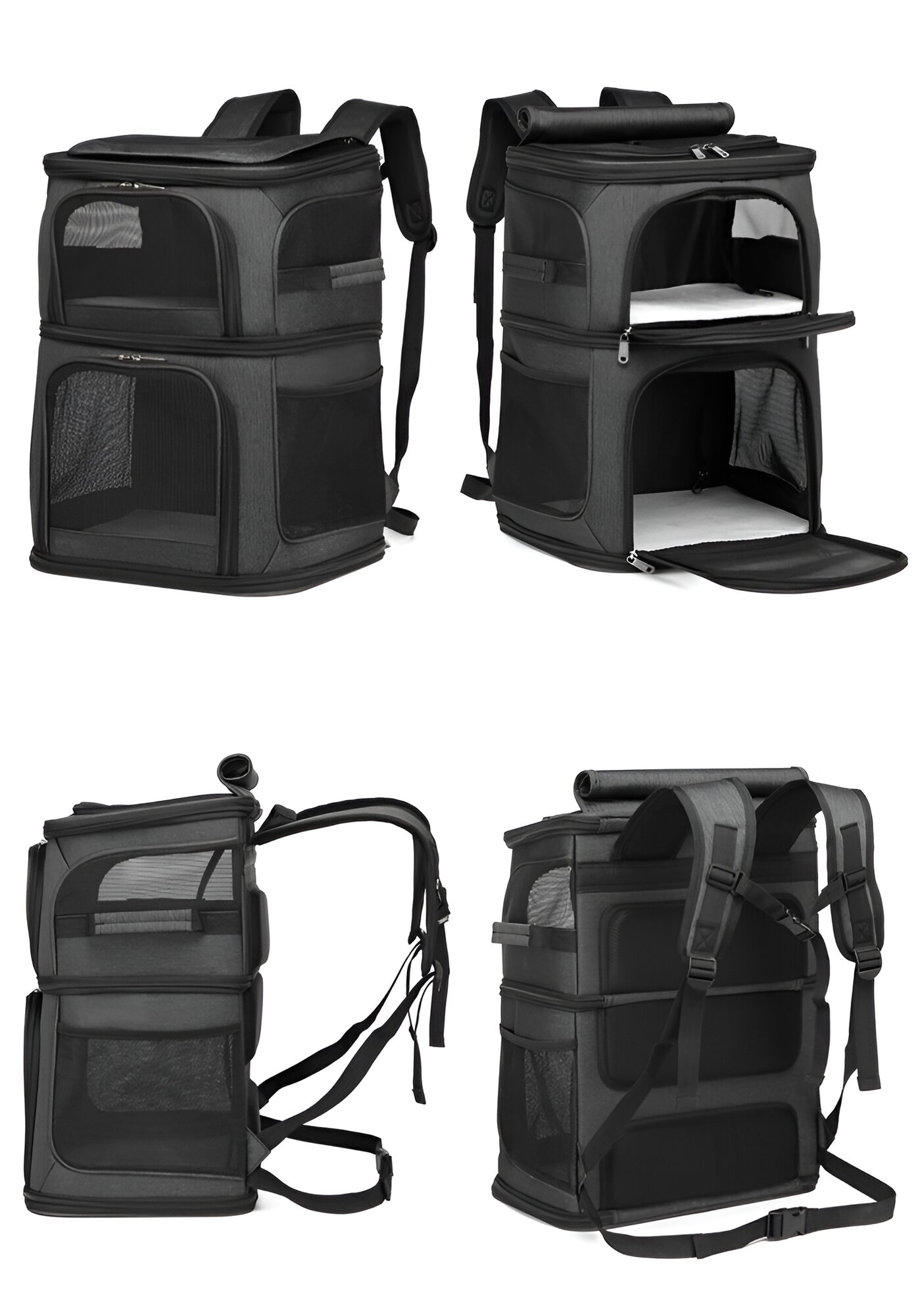 Переноска-рюкзак, для двух кошек, оксфорд, гигиенический коврик, складная, черная интересное: