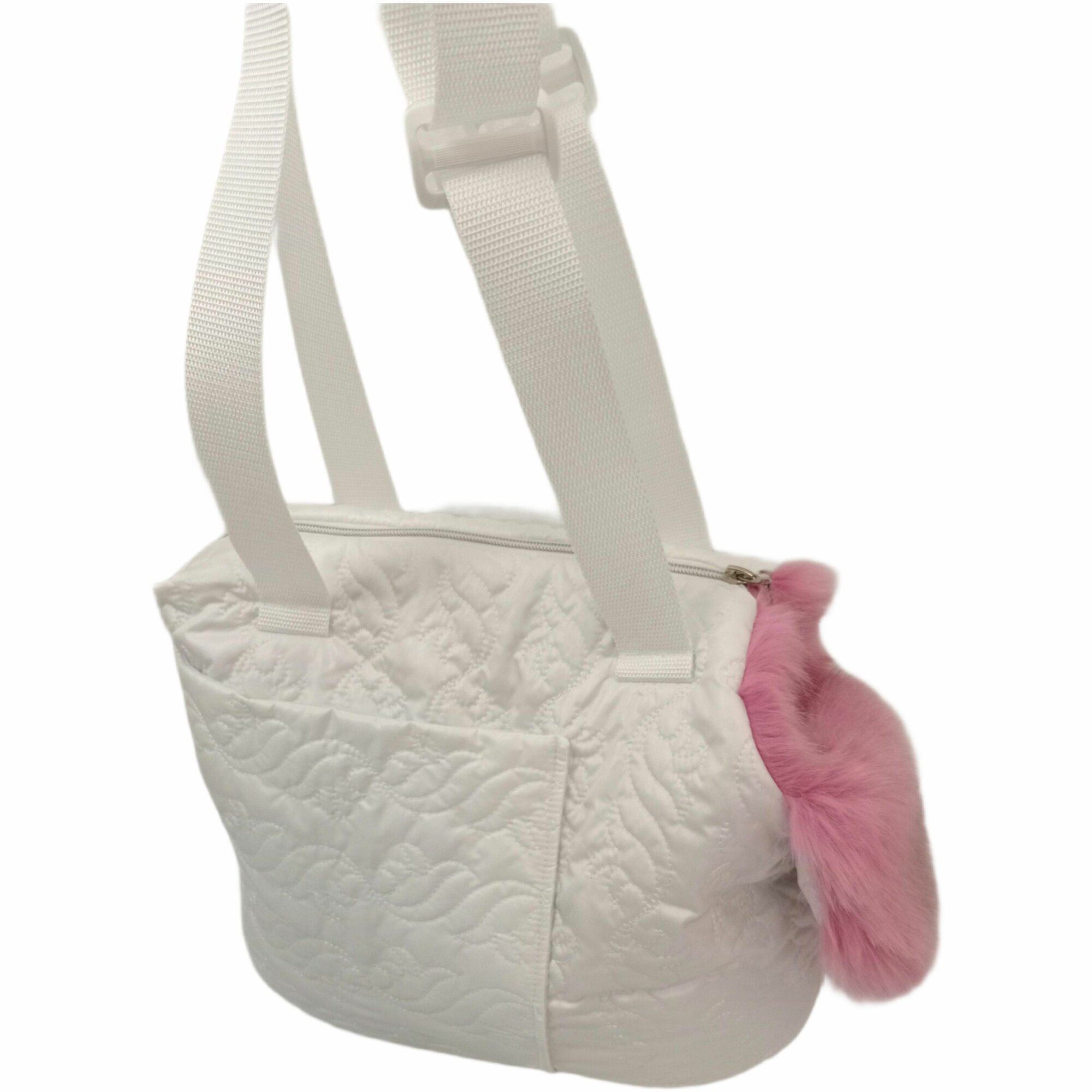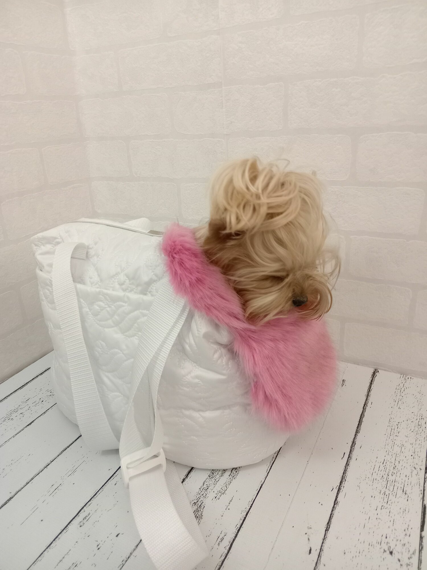 Купить Зимняя Сумка-переноска, Белая с розовым мехом , для собак 2-3 кг, размер S 30см Х 16см Х 20см