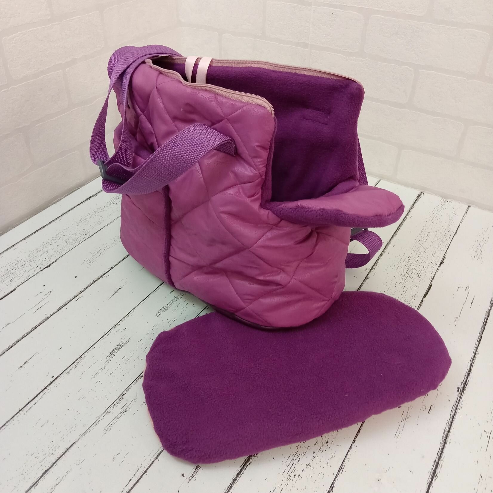 Зимняя Сумка-переноска, цвет фиолетовый , для собак 2-3 кг, размер S 30см Х 16см Х 20см
